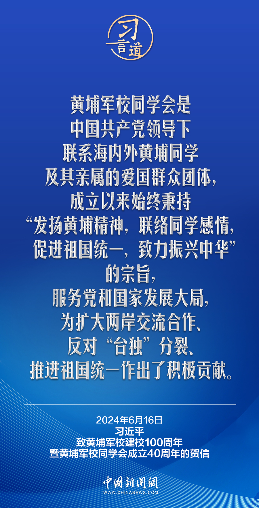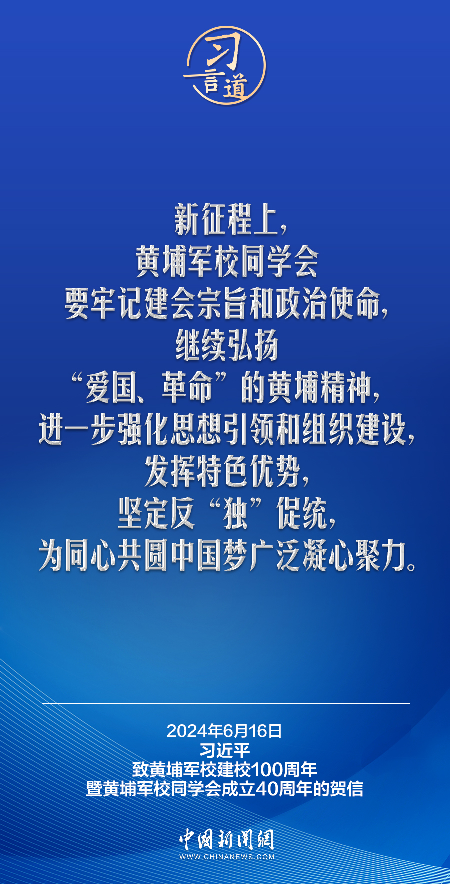 在黃埔軍校建校100周年暨黃埔軍校同學(xué)會(huì)成立40周年之際,中共中央總書記、國(guó)家主席、中央軍委主席習(xí)近平發(fā)來(lái)賀信,代表中共中央向黃埔軍校同學(xué)會(huì)表示熱烈祝賀,向廣大海內(nèi)外黃埔同學(xué)及其親屬致以誠(chéng)摯問(wèn)候。習(xí)近平指出——