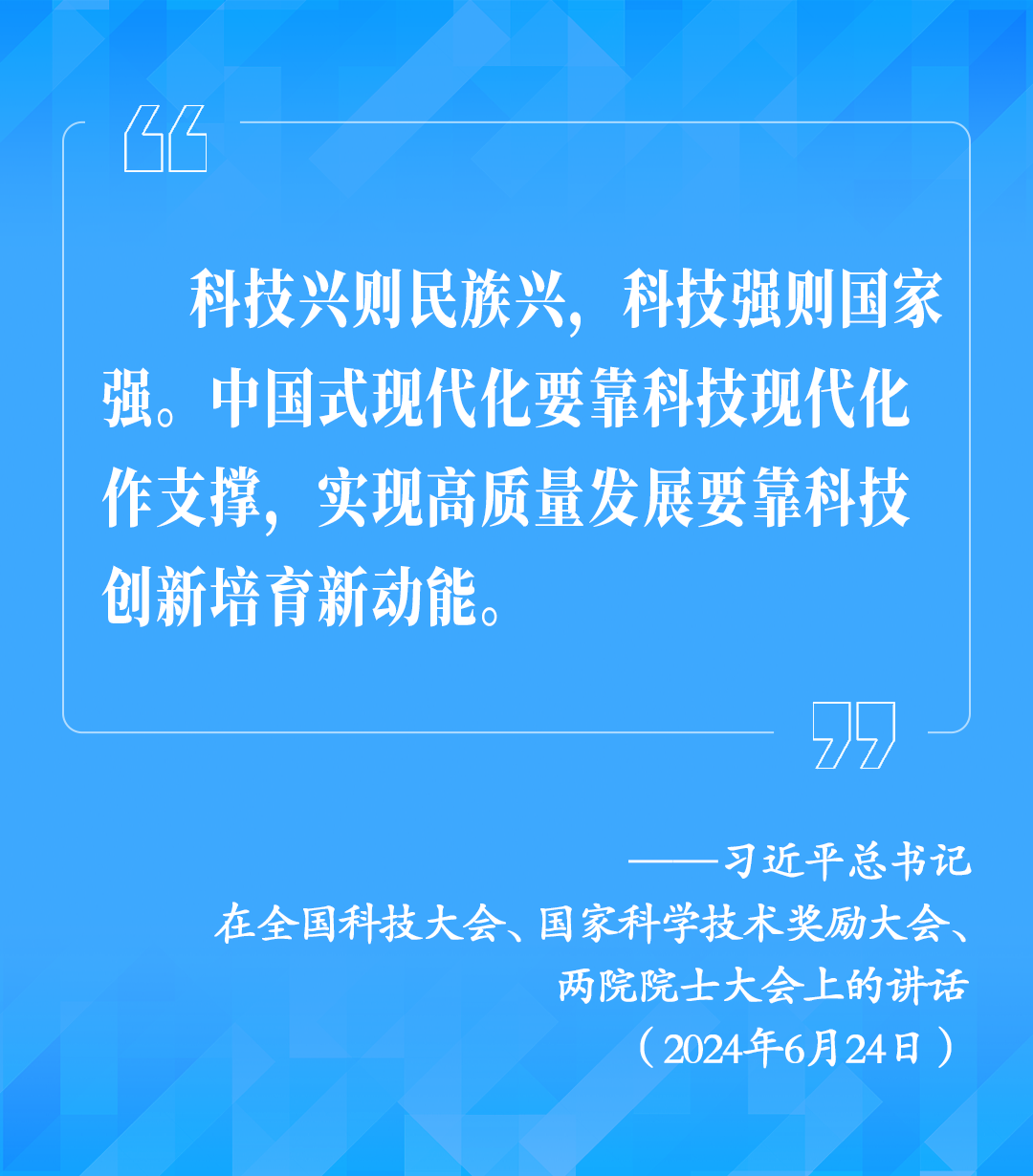 6月24日,全國科技大會、國家科學(xué)技術(shù)獎勵大會、兩院院士大會在北京召開,習(xí)近平總書記為國家最高科學(xué)技術(shù)獎獲得者等頒獎并發(fā)表重要講話。總書記強調(diào),科技興則民族興,科技強則國家強。中國式現(xiàn)代化要靠科技現(xiàn)代化作支撐,實現(xiàn)高質(zhì)量發(fā)展要靠科技創(chuàng)新培育新動能。