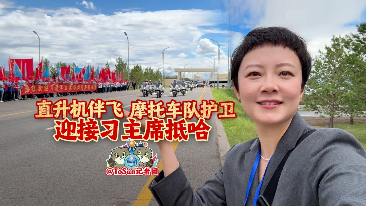 ToSun記者團(tuán)在阿斯塔納國際機(jī)場專機(jī)樓附近,跟當(dāng)?shù)刂匈Y企業(yè)員工們一起迎接習(xí)主席車隊(duì)到來。戳視頻,跟隨我們的鏡頭去現(xiàn)場看看吧。