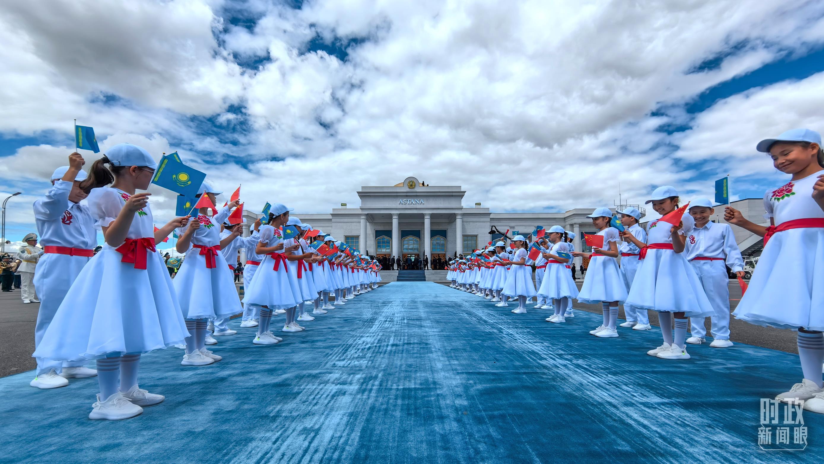 從北京到阿斯塔納,千里之外的中亞上空響起熟悉的東方旋律。在迎賓儀式現(xiàn)場,十余名哈薩克斯坦少年兒童用中文演唱《歌唱祖國》。