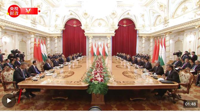 當(dāng)?shù)貢r(shí)間7月5日下午,國(guó)家主席習(xí)近平在杜尚別總統(tǒng)府同塔吉克斯坦總統(tǒng)拉赫蒙舉行大范圍會(huì)談。