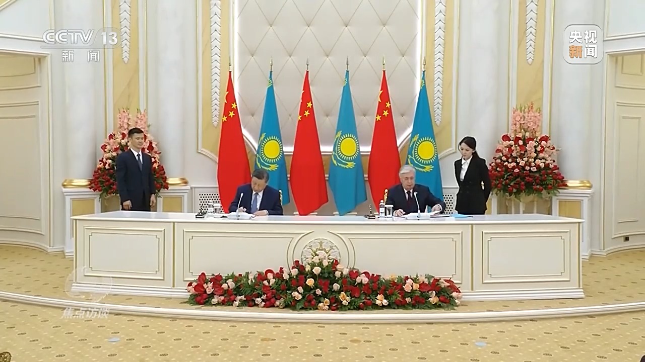 兩國(guó)元首共同簽署《中華人民共和國(guó)和哈薩克斯坦共和國(guó)聯(lián)合聲明》,見證簽署數(shù)十項(xiàng)合作文件并共同出席兩國(guó)文化中心和北京語言大學(xué)哈薩克斯坦分校揭牌儀式。
