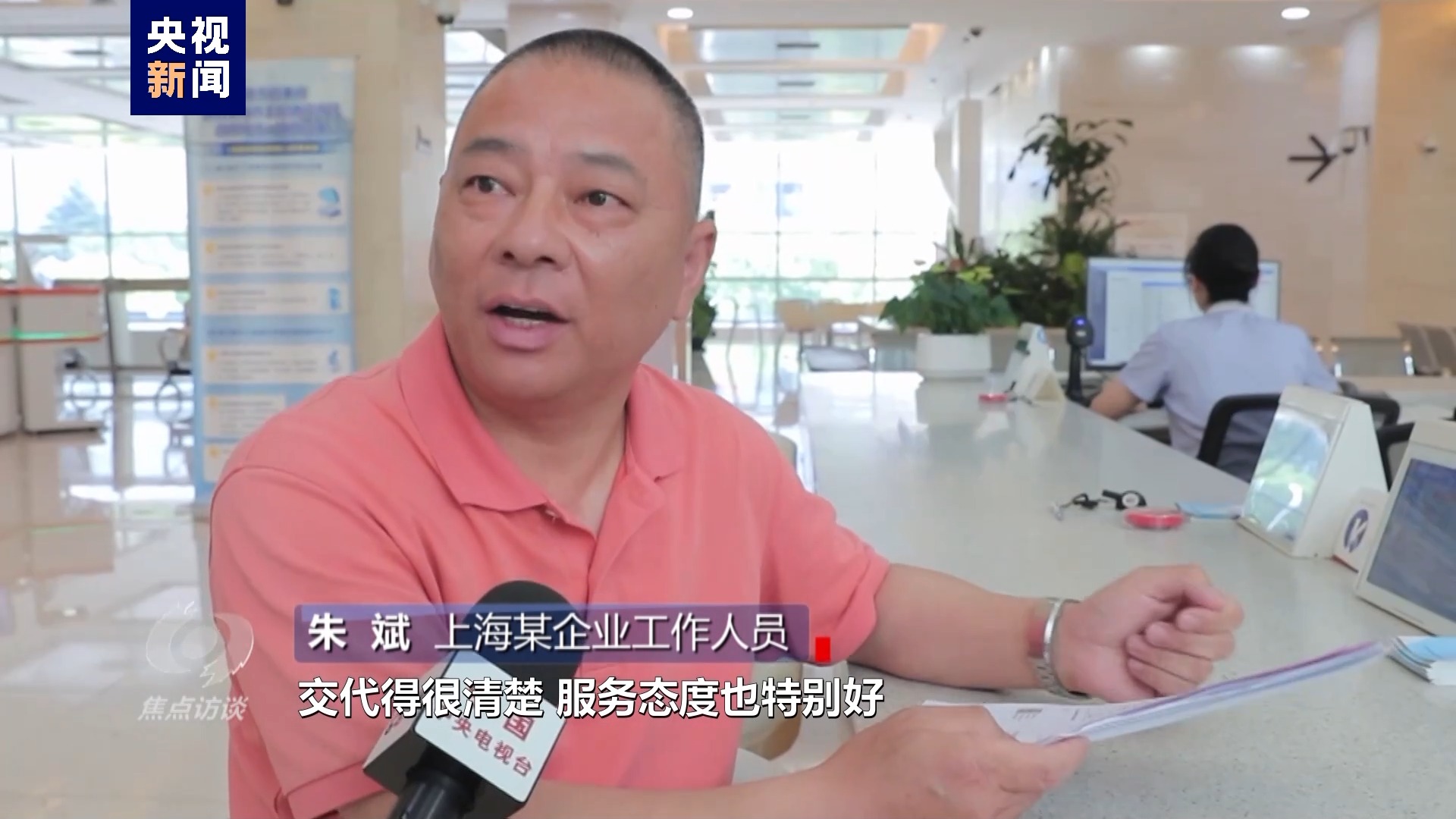 上海某企業(yè)工作人員 朱斌:對我們企業(yè)來辦事、來辦證交代得很清楚,服務(wù)態(tài)度也特別好。