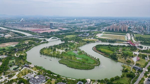 運河三灣生態(tài)文化公園鳥瞰圖(央廣網(wǎng)記者 鄭楚豫 攝)