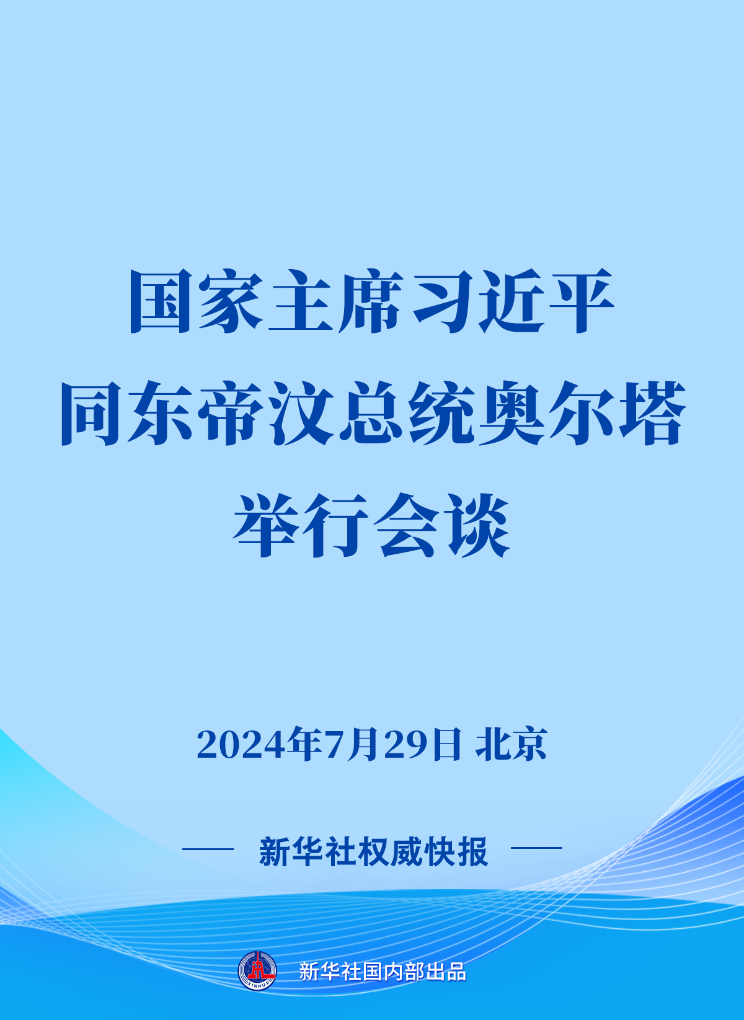 7月29日上午,國家主席習近平在北京人民大會堂同來華進行國事訪問的東帝汶總統(tǒng)奧爾塔舉行會談。