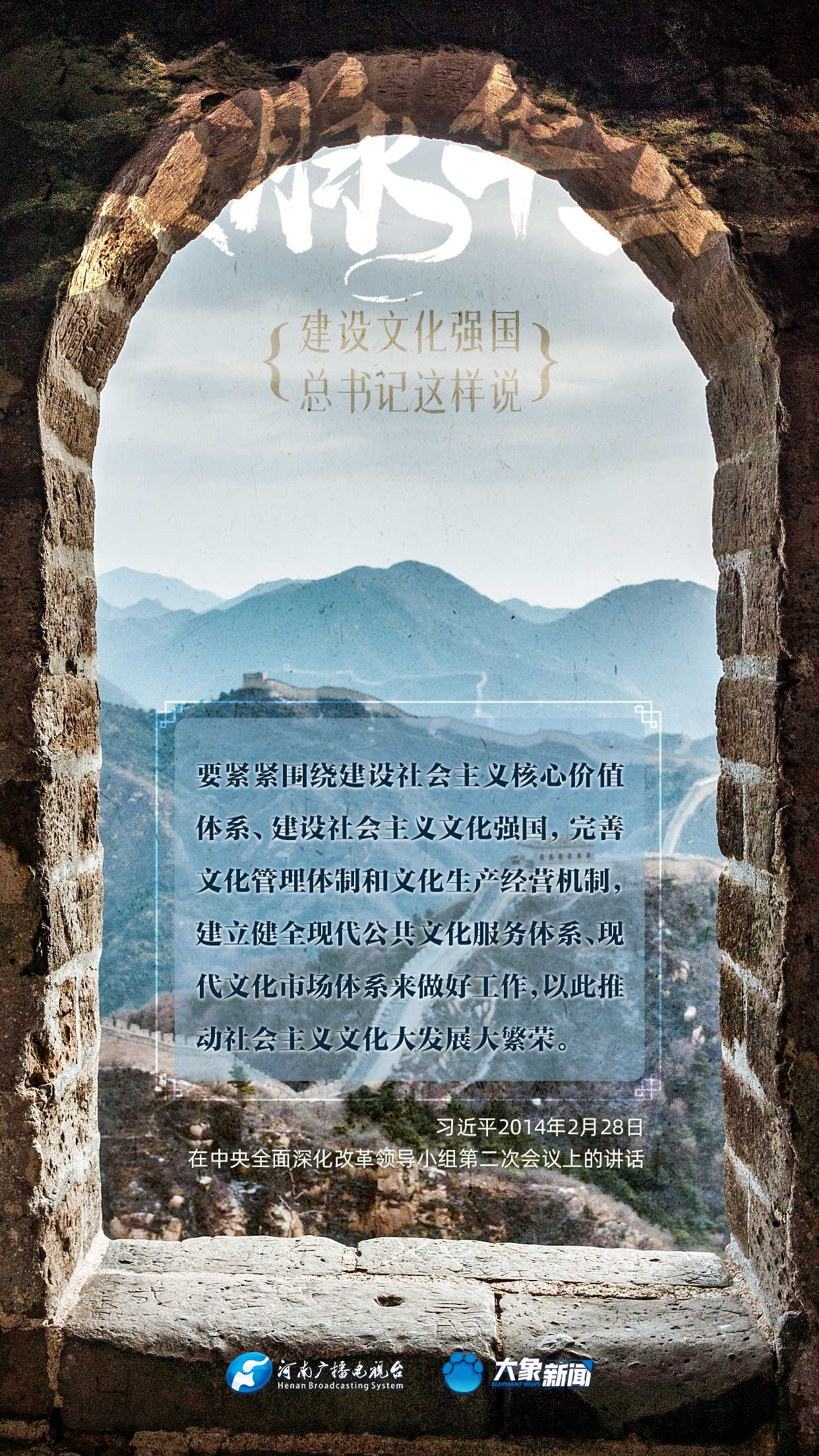 黨的十八大以來,習(xí)近平總書記站在全局和戰(zhàn)略高度,就建設(shè)社會(huì)主義文化強(qiáng)國(guó)提出一系列新思想新觀點(diǎn)新論斷,為我們堅(jiān)定文化自信,堅(jiān)持中國(guó)特色社會(huì)主義文化發(fā)展道路,提供了指引。大象新聞與您一起學(xué)習(xí)、領(lǐng)悟。