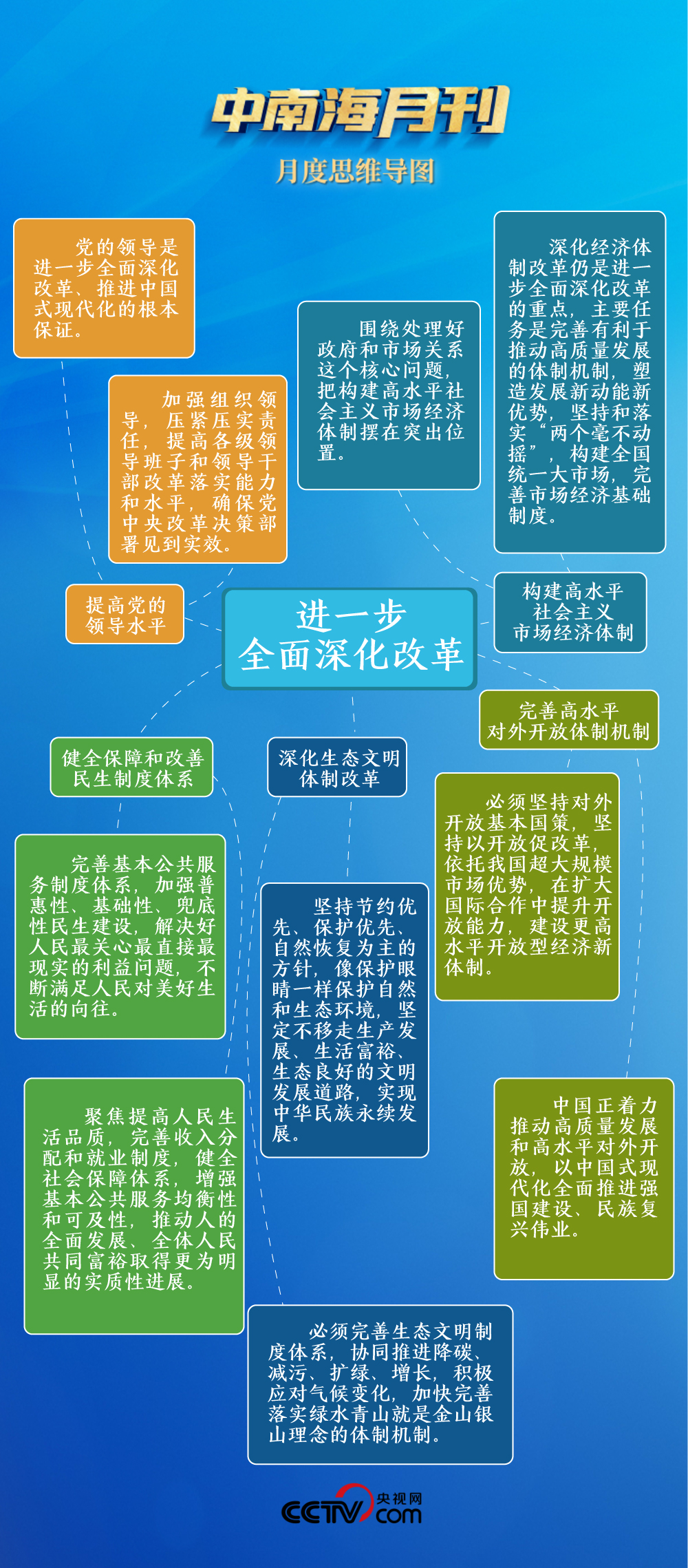 2022年10月,在黨的二十大報(bào)告中,總書記把“堅(jiān)持深化改革開放”列為前進(jìn)道路上必須牢牢把握的重大原則之一。2023年2月,在黨的二十屆二中全會(huì)上,總書記對(duì)深化黨和國(guó)家機(jī)構(gòu)改革、推進(jìn)國(guó)家治理體系和治理能力現(xiàn)代化作出重要部署。2024年3月,全國(guó)兩會(huì)期間,總書記在參加江蘇代表團(tuán)審議時(shí)指出,“要謀劃進(jìn)一步全面深化改革重大舉措”。