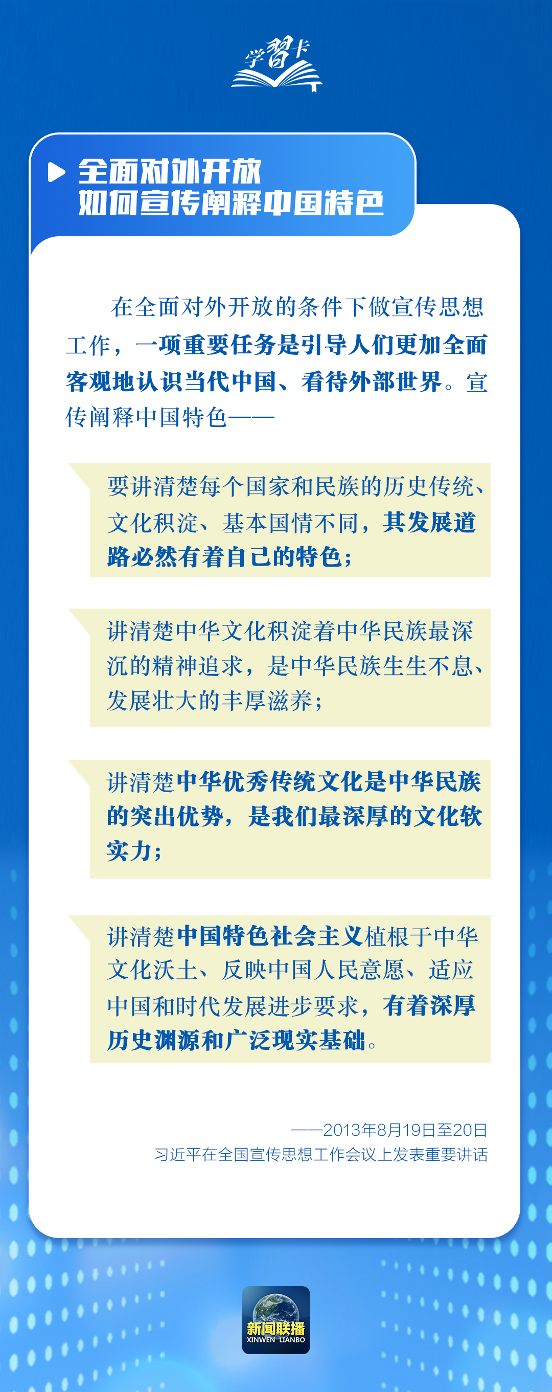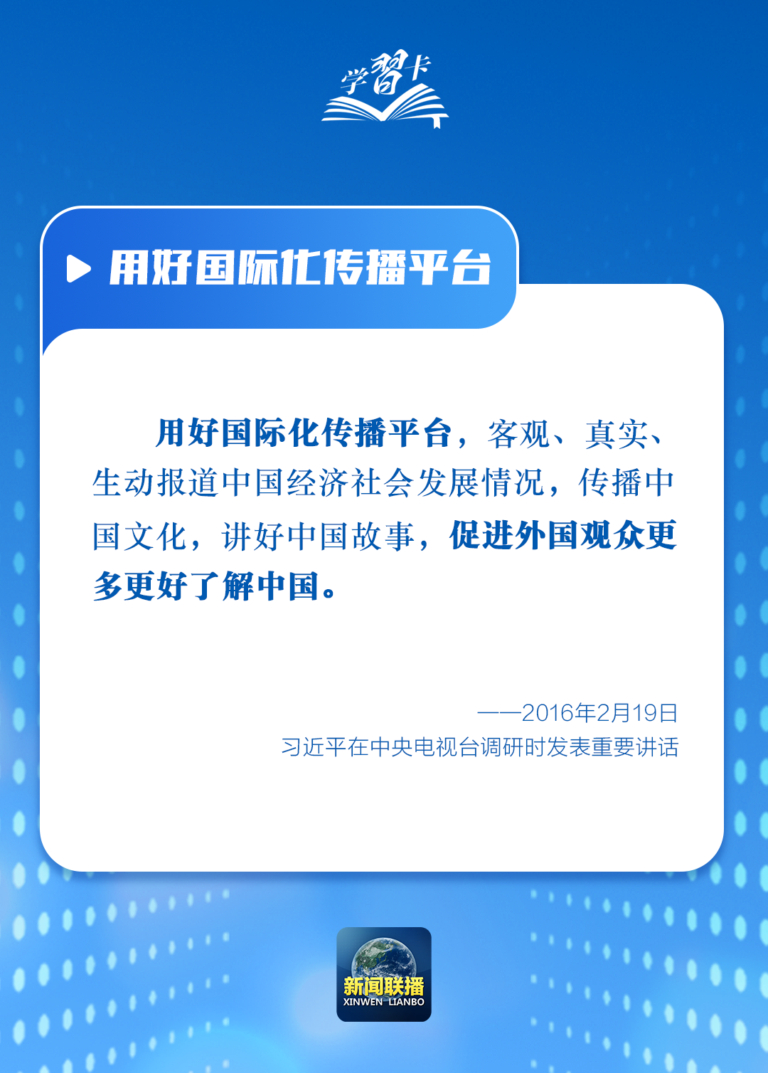 習近平總書記高度重視國際傳播能力建設,指出當前外宣工作處于歷史最好時期,同時也面臨最大壓力,強調(diào)要全面加強和改進國際傳播工作,深化文明交流互鑒,形成同我國綜合國力和國際地位相匹配的國際話語權(quán),增強中華文明傳播力影響力。一起學習↓