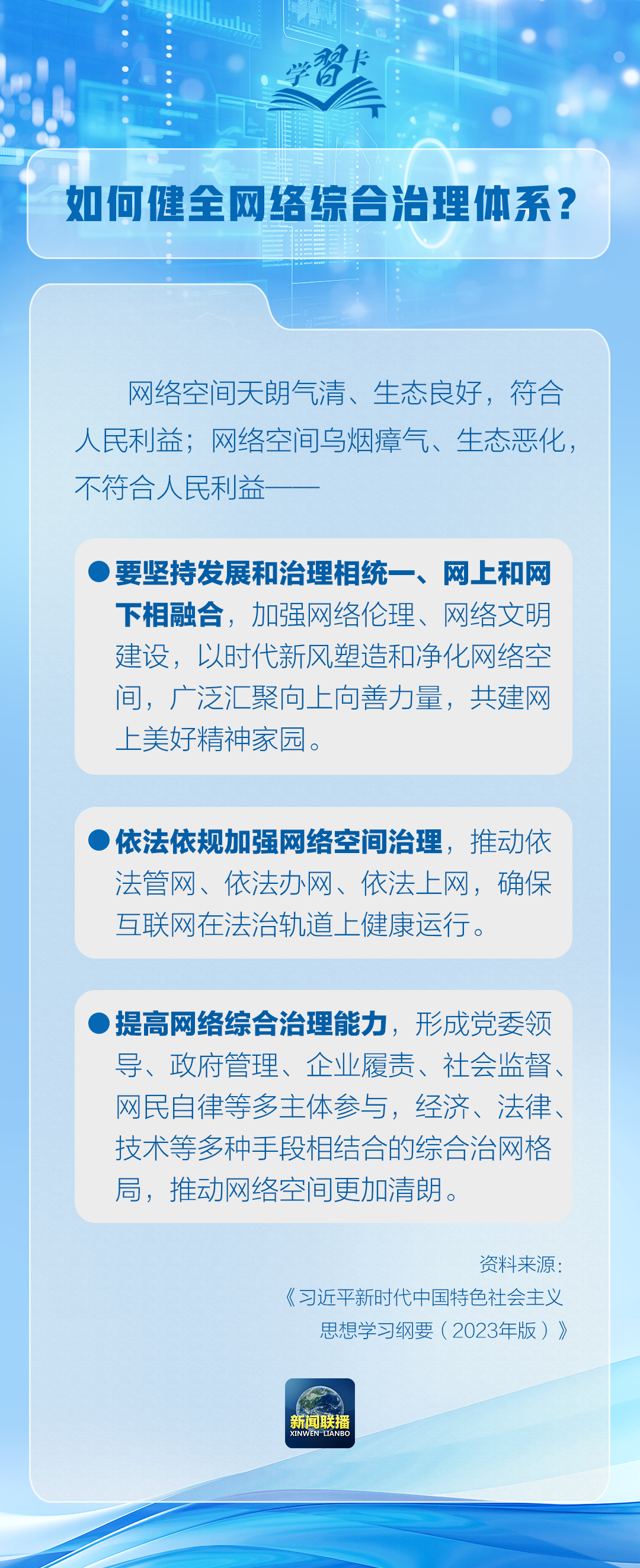 習(xí)近平總書記在《關(guān)于〈中共中央關(guān)于進一步全面深化改革、推進中國式現(xiàn)代化的決定〉的說明》中強調(diào)要健全網(wǎng)絡(luò)綜合治理體系。