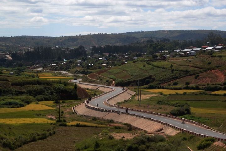 這是2022年5月3日在馬達(dá)加斯加首都塔那那利佛郊區(qū)拍攝的由中國(guó)政府無償援建的“雞蛋路”。 新華社發(fā)(西塔卡·拉喬納里松 攝)