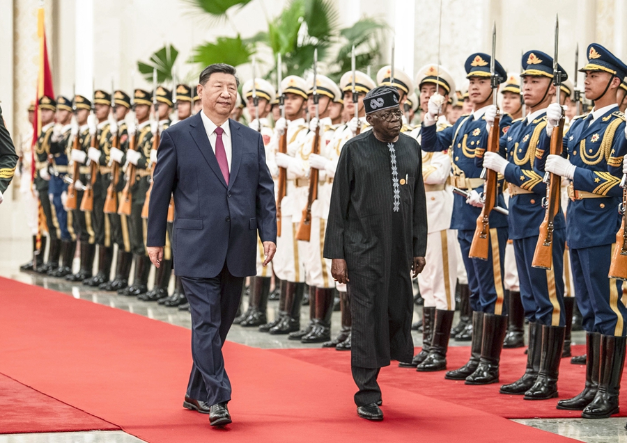 9月3日下午,國家主席習近平在北京人民大會堂同來華出席中非合作論壇北京峰會并進行國事訪問的尼日利亞總統(tǒng)提努布舉行會談。新華社記者 殷博古 攝