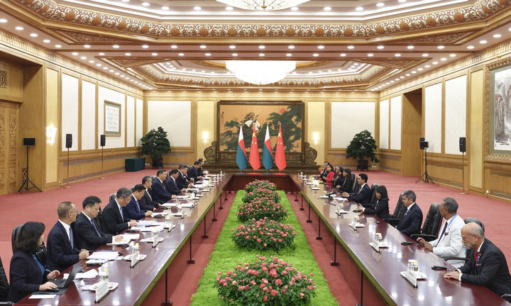 9月6日下午,國家主席習近平在北京人民大會堂會見來華出席中非合作論壇北京峰會的馬達加斯加總統(tǒng)拉喬利納。新華社記者 黃敬文 攝