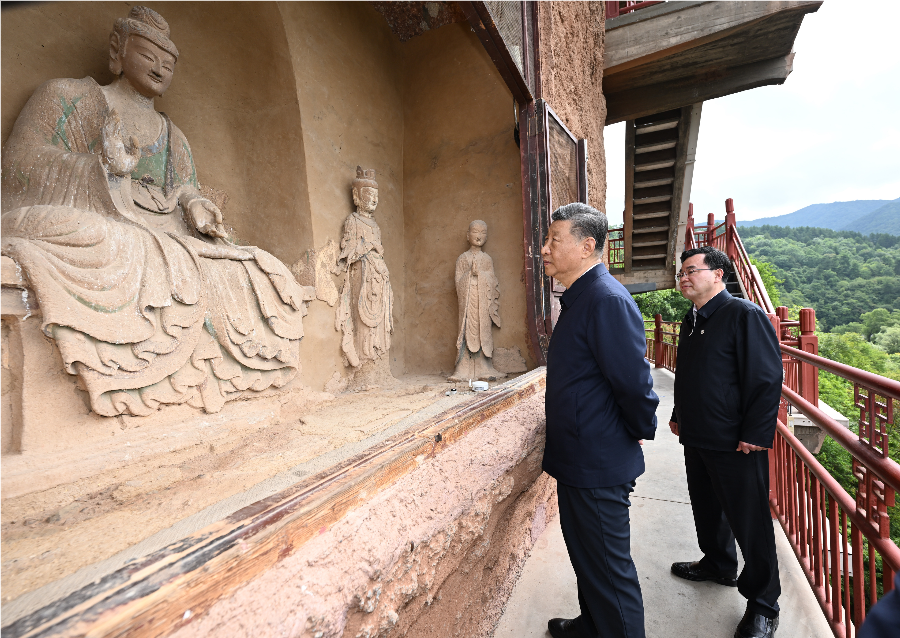9月11日,習近平總書記來到麥積山石窟,了解當?shù)赝苿游幕z產(chǎn)保護傳承情況。跟隨總書記的腳步,我們一同走進這座“東方雕塑陳列館”,沐浴歷史的煙雨,感受超然的“東方微笑”。