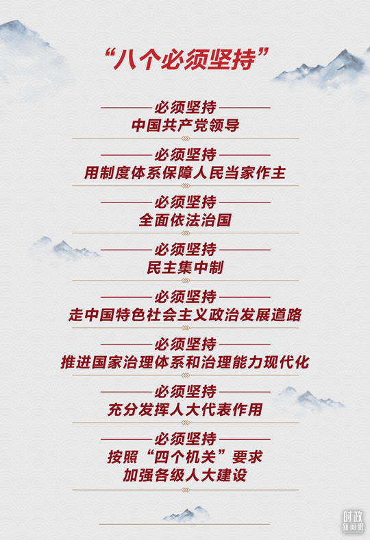 在今年這次大會上,總書記用“八個(gè)必須堅(jiān)持”系統(tǒng)總結(jié)新時(shí)代人民代表大會制度理論和實(shí)踐創(chuàng)新重大成果。