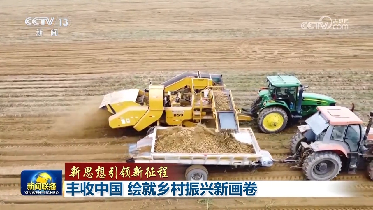 金秋時(shí)節(jié),廣袤田野上稻浪滾滾、五谷豐登。在東北平原,黑龍江北大荒集團(tuán)鶴山農(nóng)場(chǎng)的33萬(wàn)畝大豆迎來(lái)收獲,53臺(tái)大馬力收割機(jī),正抓住晴好天氣晝夜搶收。在黃淮海地區(qū),玉米收獲陸續(xù)開(kāi)啟。在西南地區(qū),水稻收獲進(jìn)入尾聲。內(nèi)蒙古鄂爾多斯的馬鈴薯收獲進(jìn)入高峰,新投入的聯(lián)合收獲機(jī)讓馬鈴薯實(shí)現(xiàn)了全程機(jī)械化采收。這一幅幅絢爛的豐收畫(huà)卷凝聚著億萬(wàn)農(nóng)民的耕耘與奮斗。