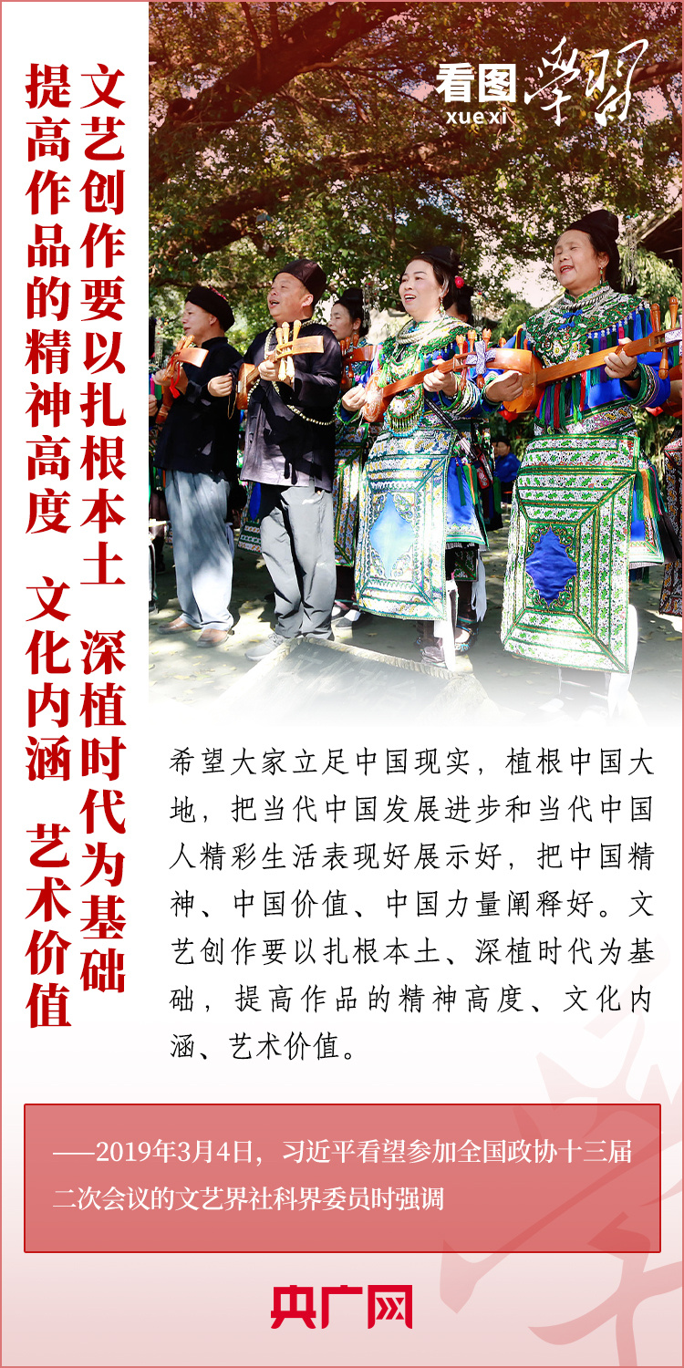 十年來(lái),我國(guó)廣大文藝工作者深入生活、扎根人民,創(chuàng)作出一大批彰顯中國(guó)精神、體現(xiàn)人文關(guān)懷、富有藝術(shù)創(chuàng)新力的優(yōu)質(zhì)文藝作品,努力用豐富多彩的文藝精品滿足人們對(duì)精神文化生活的需求。如何創(chuàng)作出更多無(wú)愧于時(shí)代、無(wú)愧于人民的優(yōu)秀作品?讓我們一起深刻領(lǐng)悟總書記的“文藝觀”。