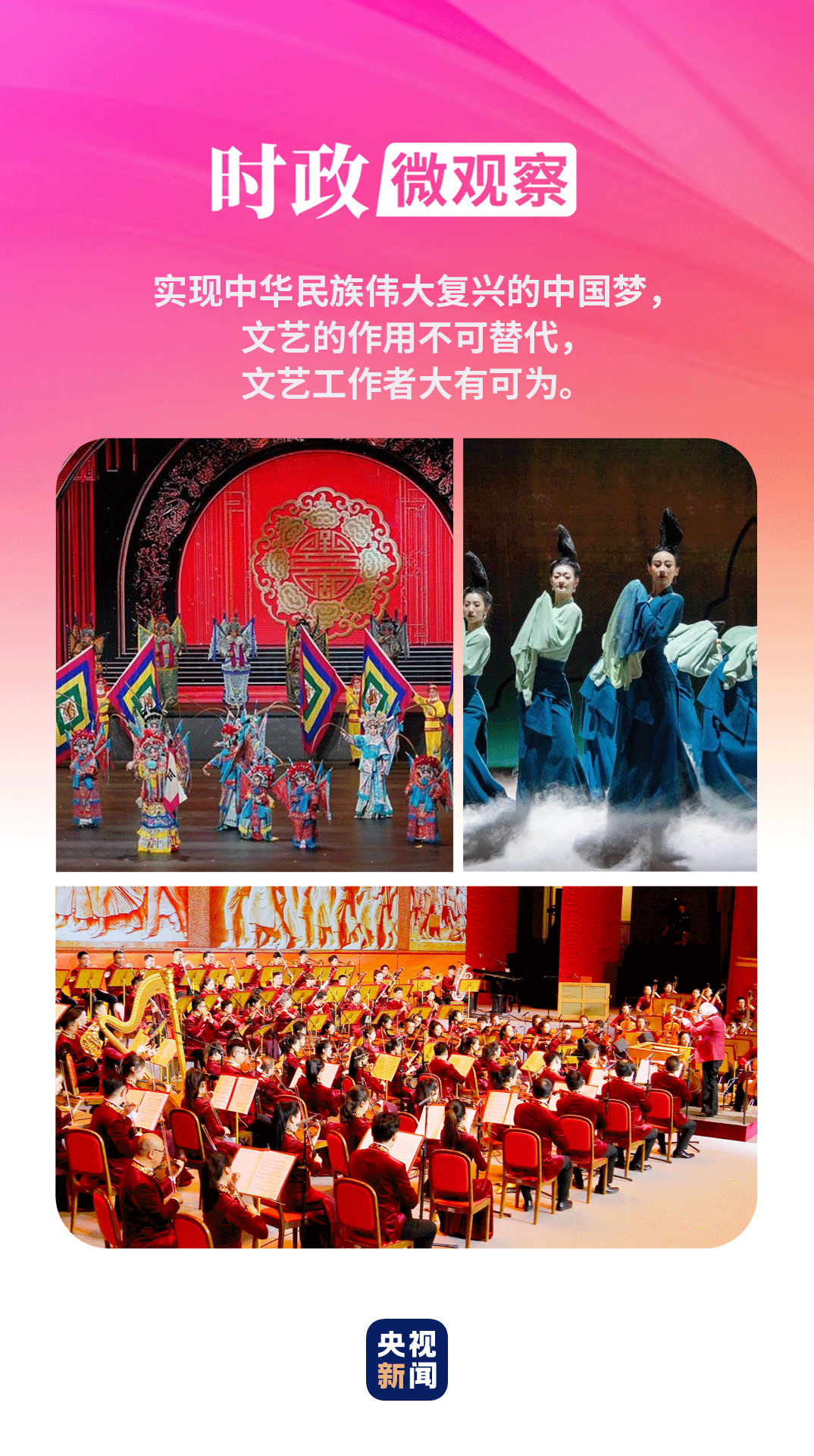 為人民放歌,為時(shí)代鑄魂。新時(shí)代以來(lái),我國(guó)文藝園地百花競(jìng)放、碩果累累,呈現(xiàn)出繁榮發(fā)展的生動(dòng)景象。黨的二十屆三中全會(huì)提出深化文化體制機(jī)制改革重大任務(wù),對(duì)文藝工作高質(zhì)量發(fā)展提出新的要求。