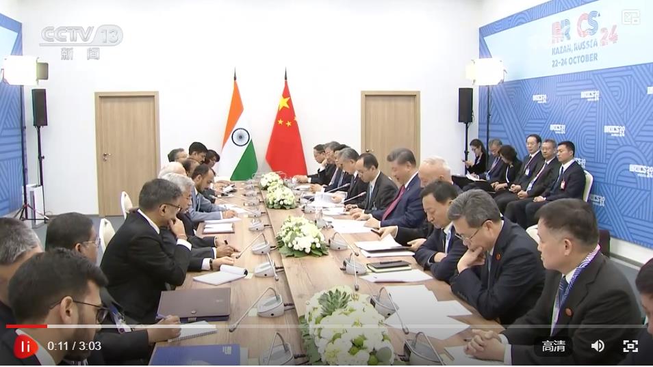 當(dāng)?shù)貢r(shí)間10月23日,國(guó)家主席習(xí)近平在喀山出席金磚國(guó)家領(lǐng)導(dǎo)人會(huì)晤期間會(huì)見(jiàn)印度總理莫迪。