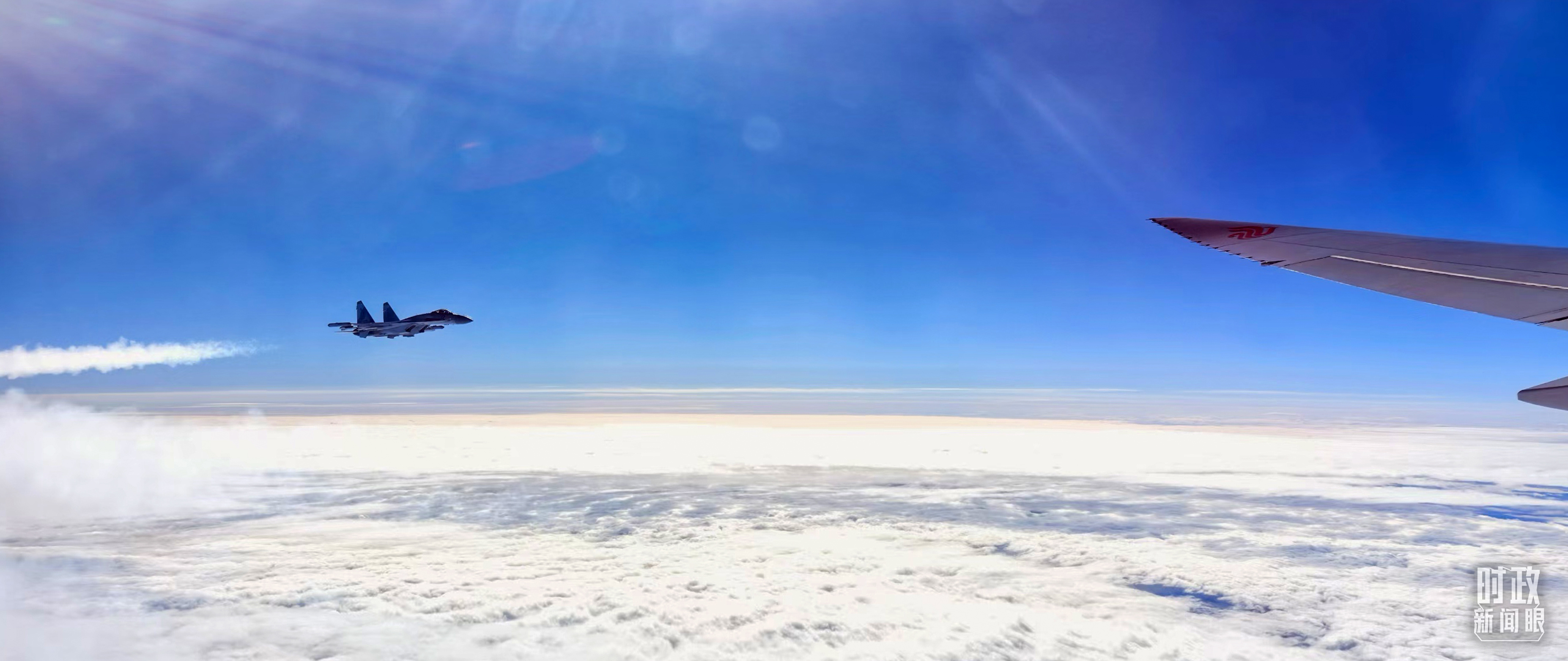 習(xí)主席乘坐的專機(jī)進(jìn)入俄羅斯領(lǐng)空時(shí),俄空軍戰(zhàn)機(jī)升空護(hù)航。(總臺(tái)央視記者李錚拍攝)