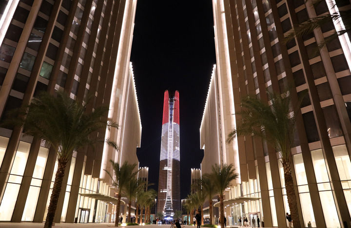 這是2024年10月21日拍攝的埃及新行政首都中央商務(wù)區(qū)夜景。新華社記者 王東震 攝