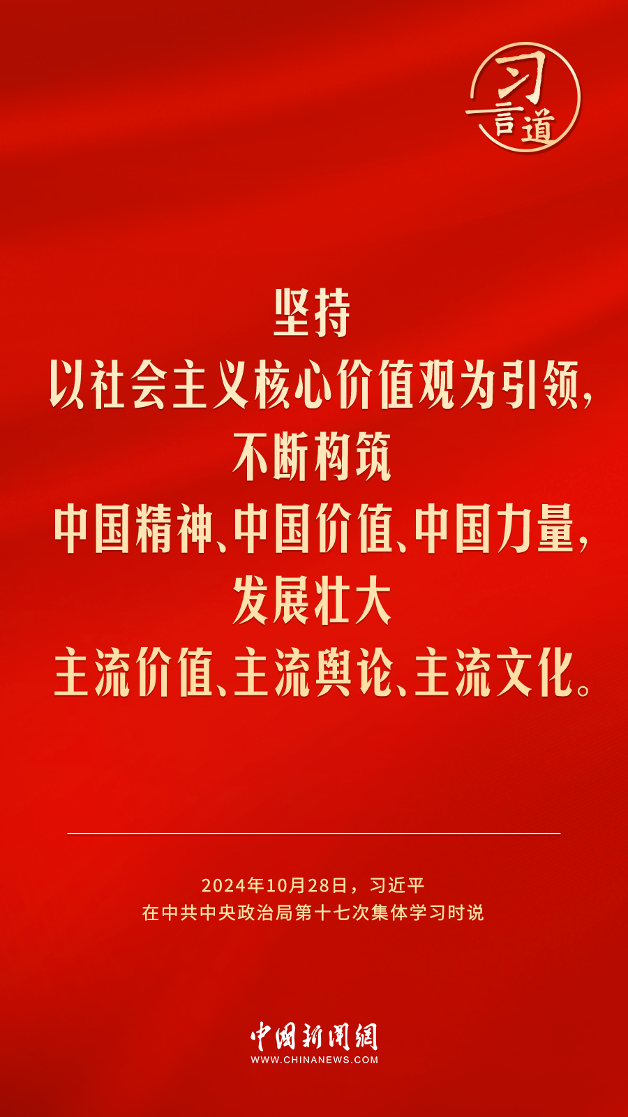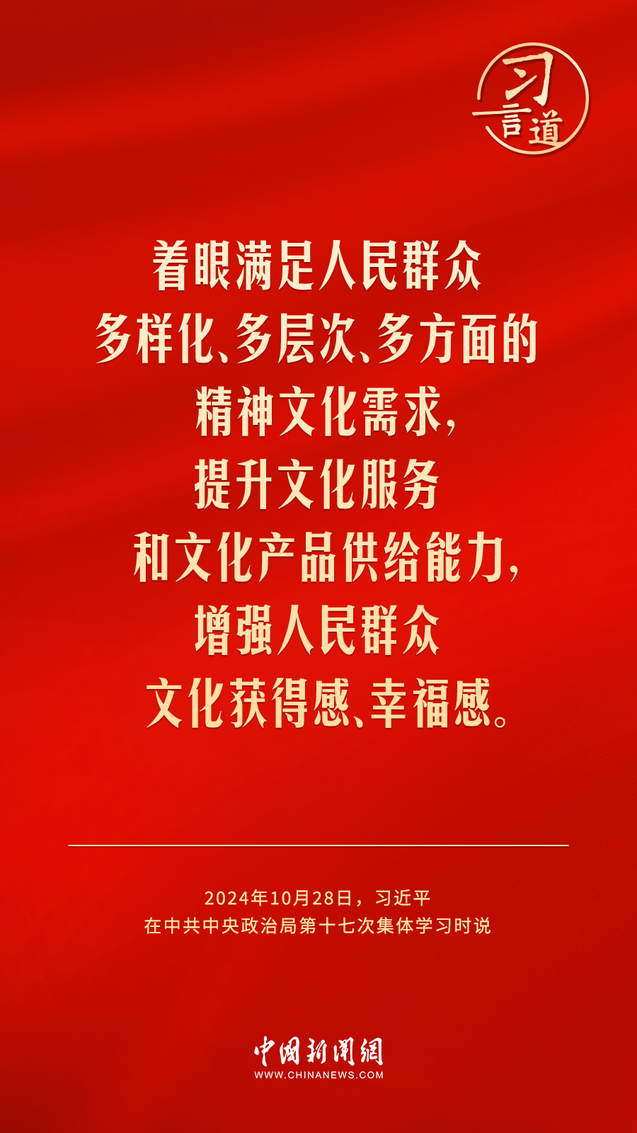 中共中央政治局10月28日下午就建設(shè)文化強(qiáng)國(guó)進(jìn)行第十七次集體學(xué)習(xí)。中共中央總書記習(xí)近平在主持學(xué)習(xí)時(shí)強(qiáng)調(diào)——