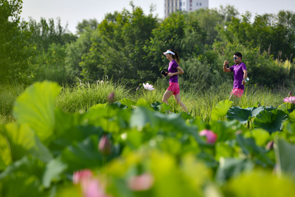 2024年6月23日,市民在陜西省漢中市天漢濕地公園內(nèi)運(yùn)動(dòng)休閑。漢江是長江的最大支流,是南水北調(diào)中線工程的重要水源。近年來,漢中市加強(qiáng)對(duì)漢江源頭和沿岸濕地生態(tài)保護(hù)修復(fù),構(gòu)建人水和諧共生的美麗城市,確?!耙汇逅览m(xù)北上”。