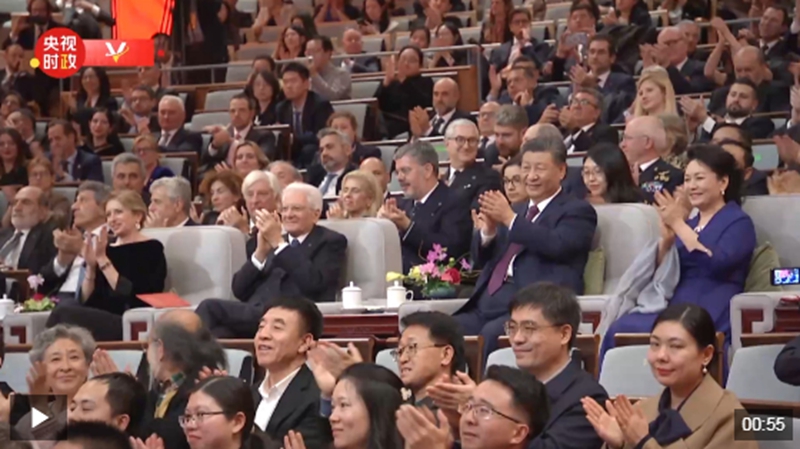 11月8日晚,國(guó)家主席習(xí)近平和夫人彭麗媛在北京國(guó)家大劇院同意大利總統(tǒng)馬塔雷拉和女兒勞拉一同觀看“奇妙的和諧”——普契尼音樂會(huì)。