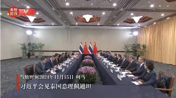 當?shù)貢r間11月15日,國家主席習近平在利馬出席亞太經(jīng)合組織領(lǐng)導(dǎo)人非正式會議期間會見泰國總理佩通坦。