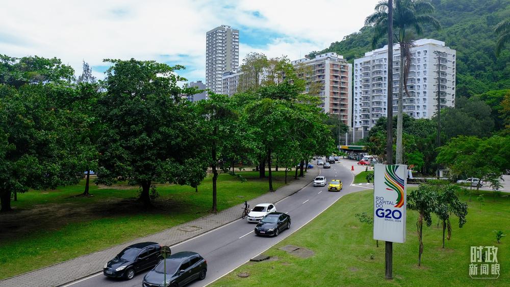 巴西里約熱內(nèi)盧街頭的G20標(biāo)識。(總臺央視記者曹亞星拍攝)