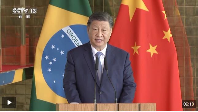 習近平強調(diào),當前世界并不太平,還有不少地區(qū)戰(zhàn)火紛飛、動蕩不安。人類是不可分割的安全共同體,只有踐行共同、綜合、合作、可持續(xù)的安全觀,才能走出一條普遍安全之路。中國和巴西聯(lián)合發(fā)表了關(guān)于政治解決烏克蘭危機的“六點共識”,會同有關(guān)全球南方國家發(fā)起烏克蘭危機“和平之友”小組。我們要匯集更多致力于和平的聲音,為實現(xiàn)政治解決烏克蘭危機鋪平道路。我們對加沙沖突持續(xù)擴散深感憂慮,呼吁盡快實現(xiàn)?;鹬箲?zhàn),落實“兩國方案”,為全面、公正、持久解決巴勒斯坦問題不懈努力。中巴兩國都有揚正義、樹道義的傳統(tǒng)和擔當,中國愿同巴西一道,不斷豐富中巴命運共同體的時代內(nèi)涵,堅定捍衛(wèi)真正的多邊主義,共同發(fā)出要發(fā)展不要貧窮、要合作不要對抗、要公正不要霸權(quán)的新時代強音,攜手建設(shè)更加美好的世界。