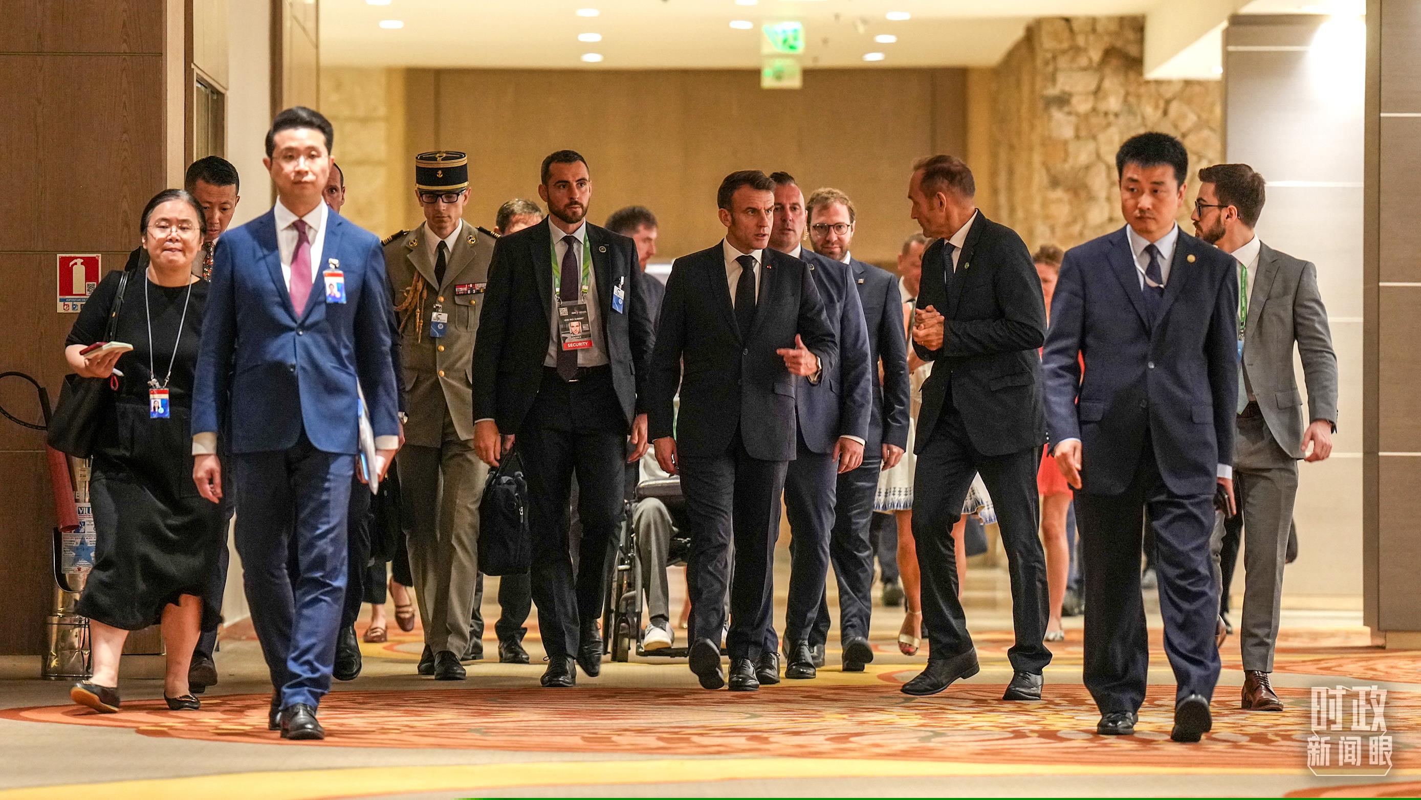 法國總統(tǒng)馬克龍前往會(huì)場。(總臺(tái)記者李晉拍攝)