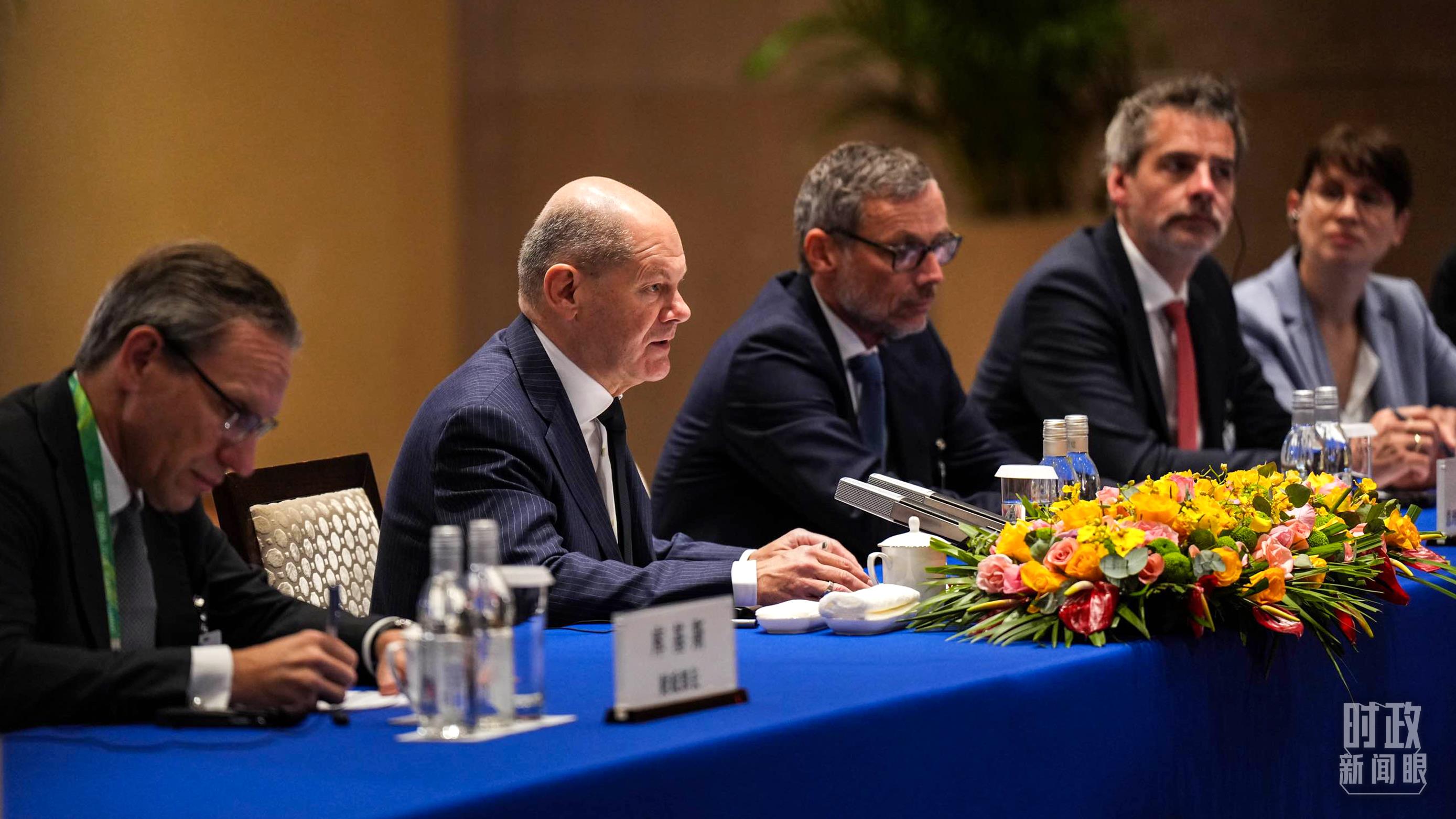 習(xí)主席會(huì)見德國總理朔爾茨現(xiàn)場。(總臺(tái)記者李晉拍攝)