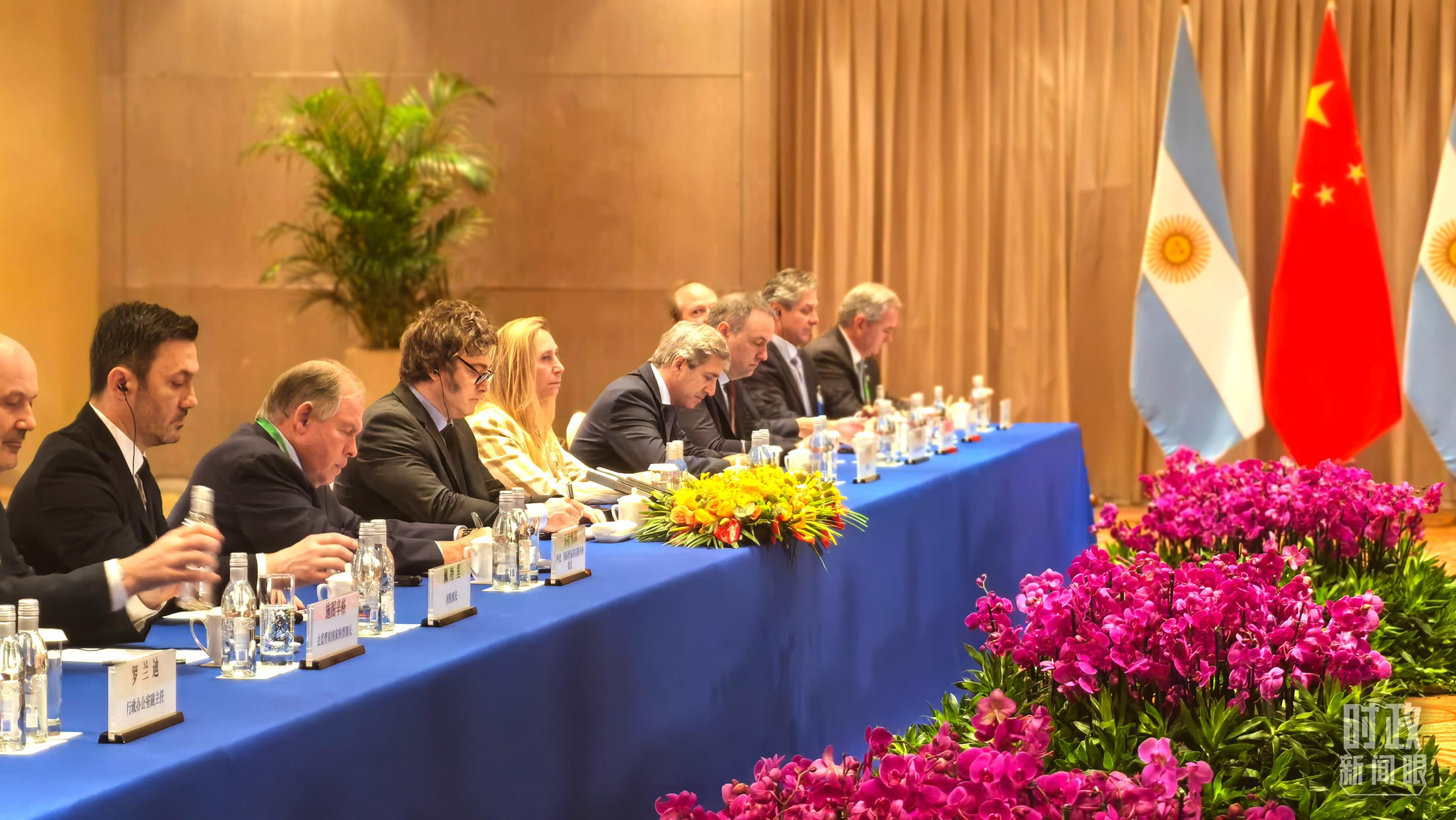 習(xí)主席會(huì)見阿根廷總統(tǒng)米萊現(xiàn)場。(總臺(tái)央廣記者潘毅拍攝)