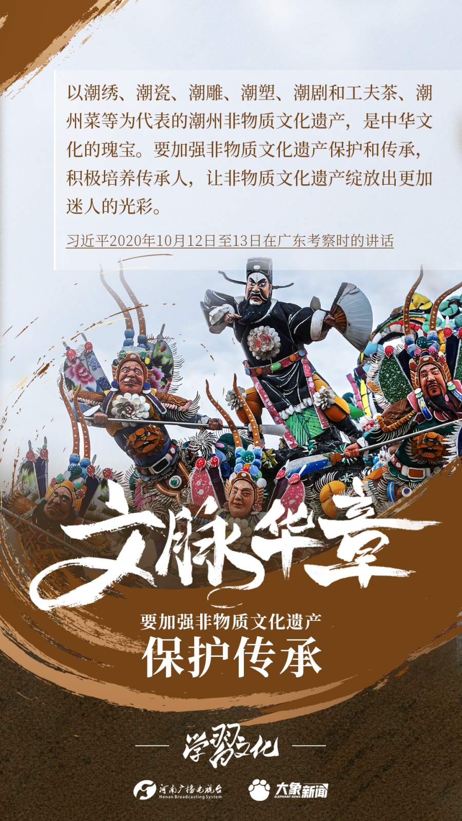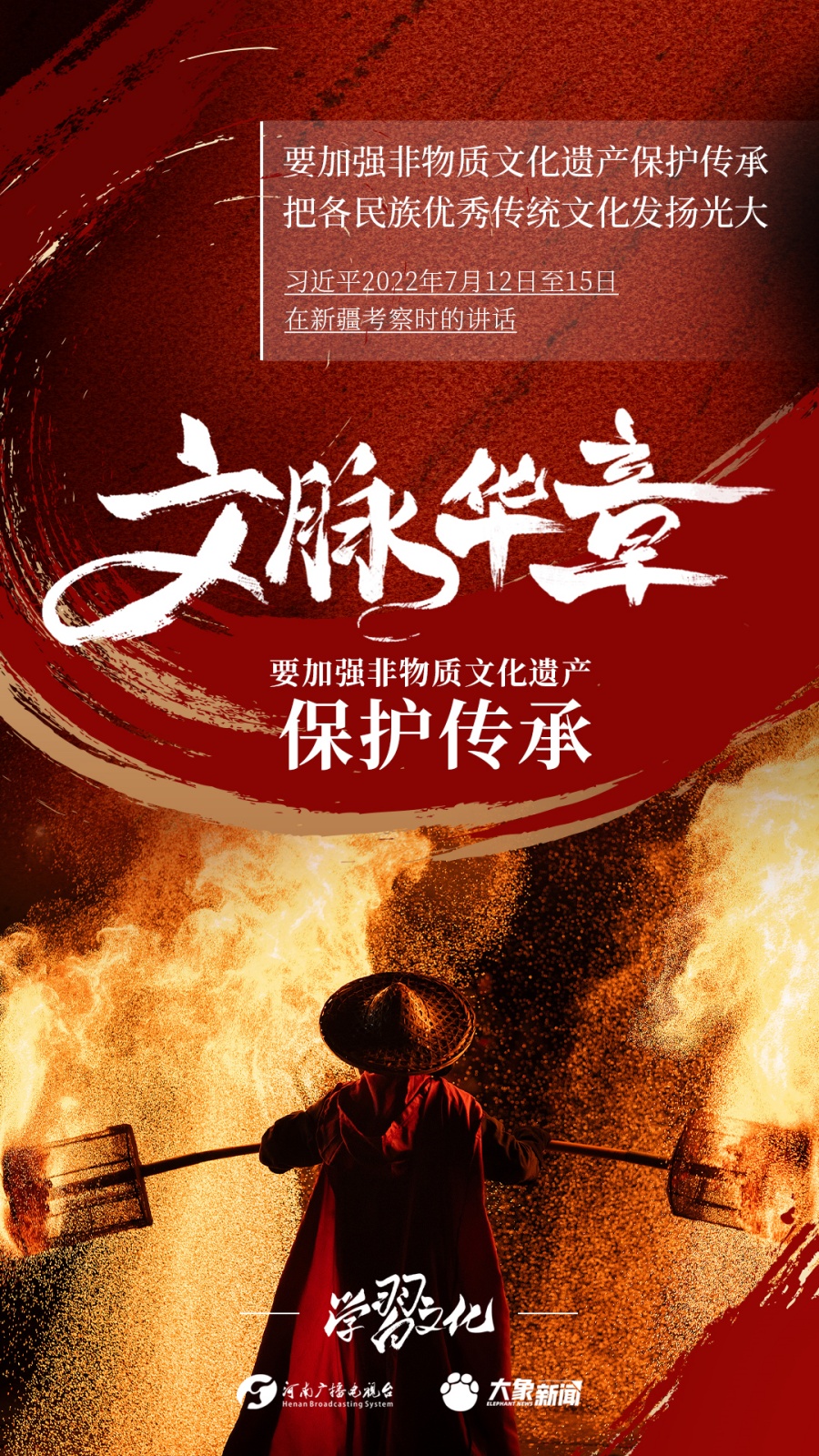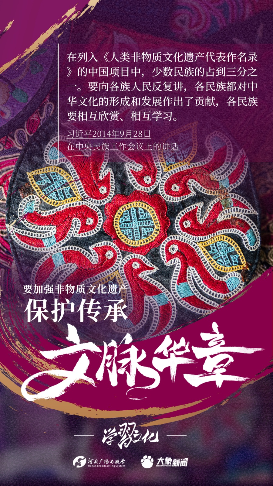 非物質(zhì)文化遺產(chǎn)是中華優(yōu)秀傳統(tǒng)文化的重要組成部分,是中華文明綿延傳承的生動見證,是我國各族人民寶貴的精神財(cái)富。習(xí)近平總書記十分關(guān)心非物質(zhì)文化遺產(chǎn)的保護(hù)傳承,多次強(qiáng)調(diào)“要扎實(shí)做好非物質(zhì)文化遺產(chǎn)的系統(tǒng)性保護(hù)”“培養(yǎng)好傳承人”等。大象新聞為您梳理,邀您一起學(xué)習(xí)、領(lǐng)悟、踐行。