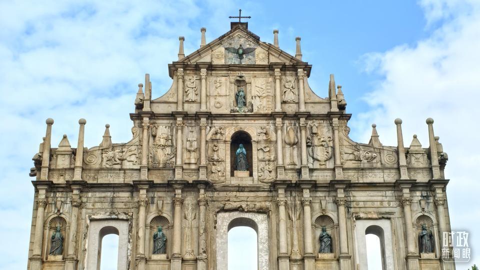 △澳門大三巴牌坊。(總臺(tái)央視記者張垚拍攝)