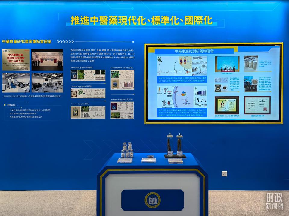 △澳門科技大學中藥質量研究國家重點實驗室、月球與行星科學國家重點實驗室成果展示。(總臺央視記者陸泓宇拍攝)