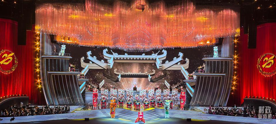 △慶祝澳門回歸祖國25周年文藝晚會現(xiàn)場燈光璀璨,歡樂喜慶。(總臺央視記者范學禹拍攝)
