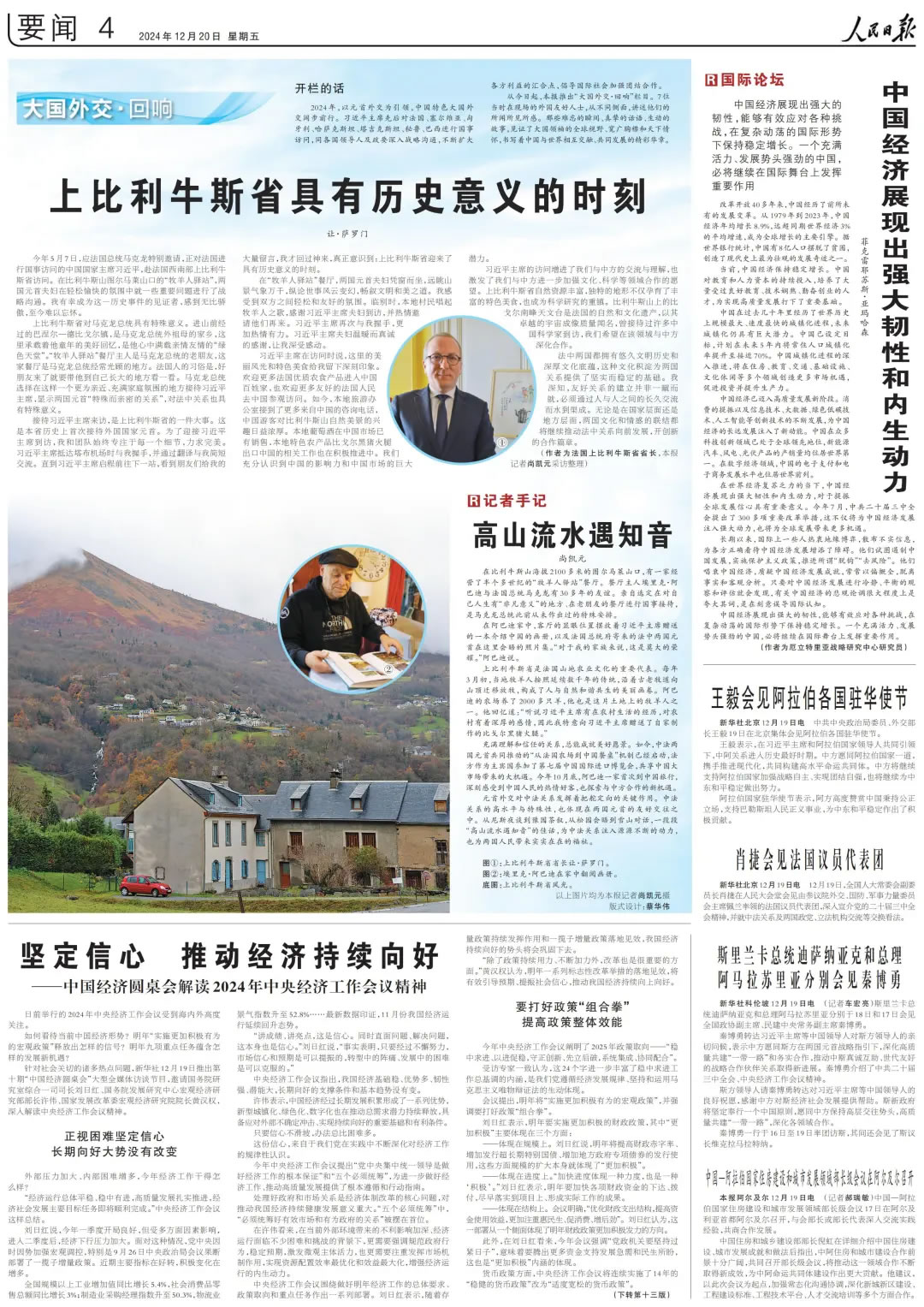 今年5月7日,應(yīng)法國(guó)總統(tǒng)馬克龍?zhí)貏e邀請(qǐng),正對(duì)法國(guó)進(jìn)行國(guó)事訪問(wèn)的中國(guó)國(guó)家主席習(xí)近平,赴法國(guó)西南部上比利牛斯省訪問(wèn)。在比利牛斯山圖爾馬萊山口的“牧羊人驛站”,兩國(guó)元首夫婦在輕松愉快的氛圍中就一些重要問(wèn)題進(jìn)行了戰(zhàn)略溝通。我有幸成為這一歷史事件的見證者,感到無(wú)比驕傲,至今難以忘懷。