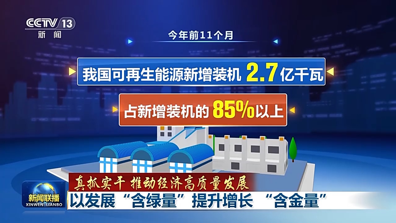 中國電力企業(yè)聯(lián)合會(huì)的最新數(shù)據(jù)顯示,今年前11個(gè)月,我國可再生能源新增裝機(jī)2.7億千瓦,占新增裝機(jī)的85%以上;到11月底,我國風(fēng)電和太陽能發(fā)電裝機(jī)占比首次超過四成,裝機(jī)規(guī)模已超過煤電,提前6年多完成我國在氣候雄心峰會(huì)上對(duì)世界的承諾。