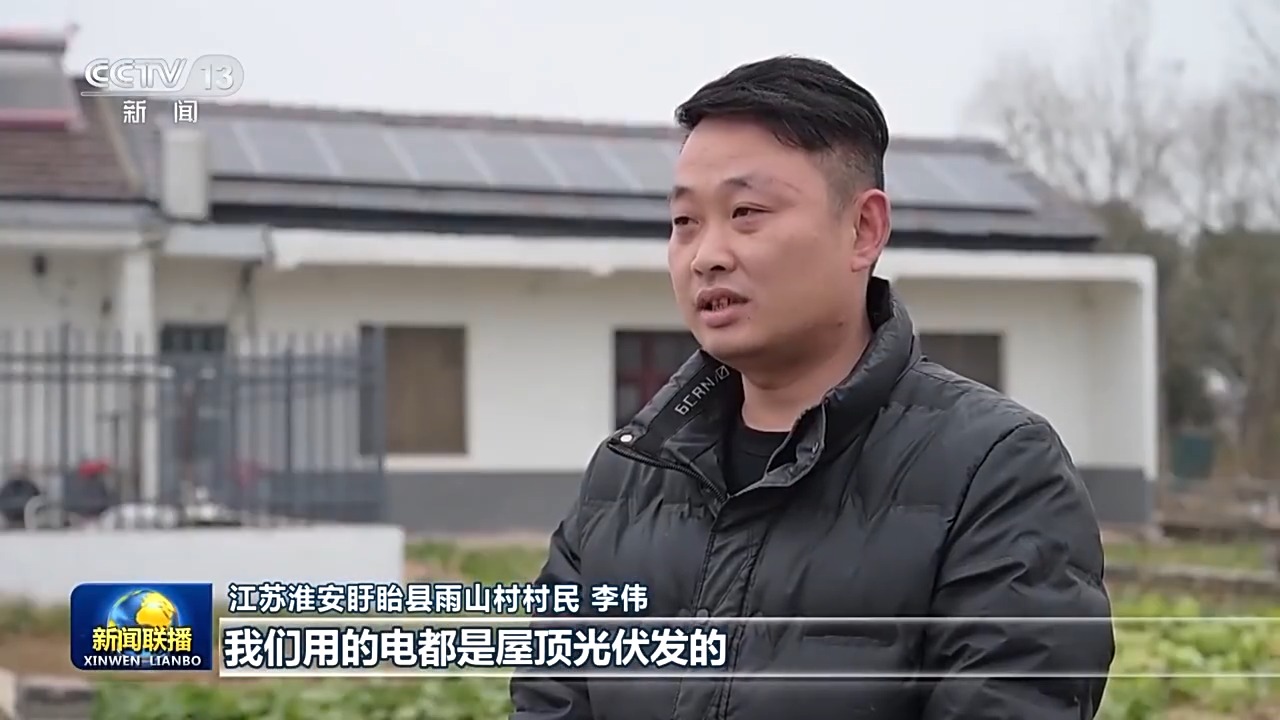 江蘇淮安盱眙縣雨山村村民 李偉:我們用的電都是屋頂光伏發(fā)的,不僅家里可以用,還能給電動(dòng)汽車充電。綠色環(huán)保,還能帶來收益。