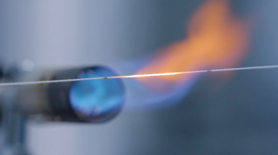 “這根絲超級耐高溫,1200℃的火焰也燒不斷它。它比頭發(fā)絲還細(xì),直徑只有7到12微米,卻能提起5公斤重物?!苯榻B,這根絲可以做成布、繩子、套管、織帶等,可應(yīng)用于石油化工、能源電力、國防安全等多個領(lǐng)域。10年研發(fā)期間,工作人員做了無數(shù)次試驗(yàn),打了幾萬個樣品,才讓它硬核出圈,填補(bǔ)了國內(nèi)高性能纖維材料的空白。