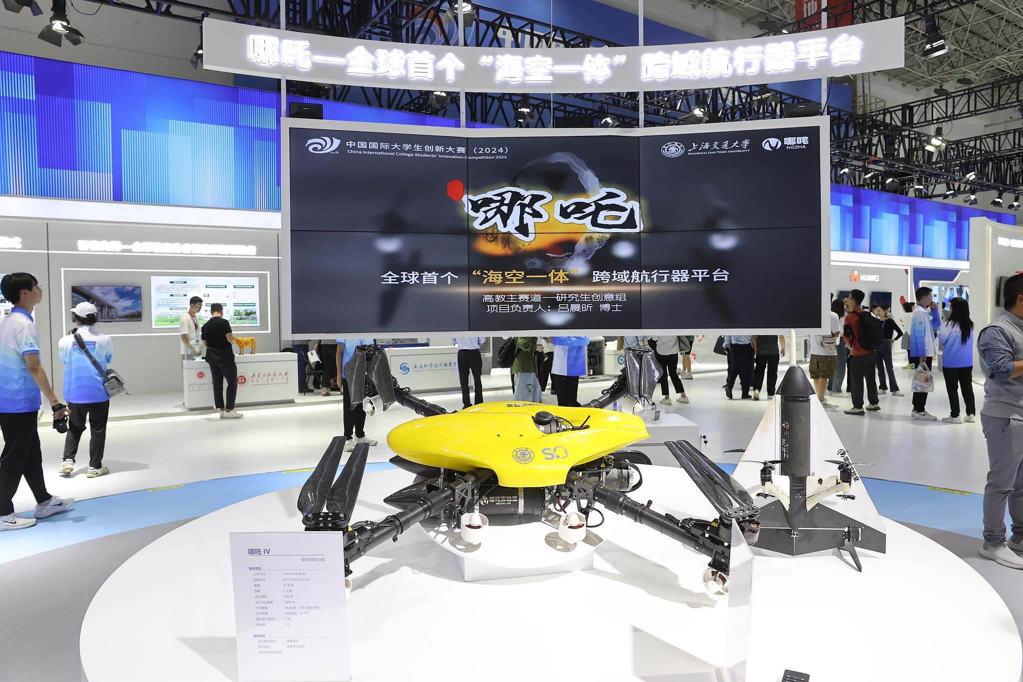 2024年10月12日至15日,中國(guó)國(guó)際大學(xué)生創(chuàng)新大賽總決賽及同期活動(dòng)在上海舉行。來自上海交通大學(xué)的“哪吒——全球首個(gè)‘??找惑w’跨域航行器平臺(tái)”項(xiàng)目奪得冠軍。