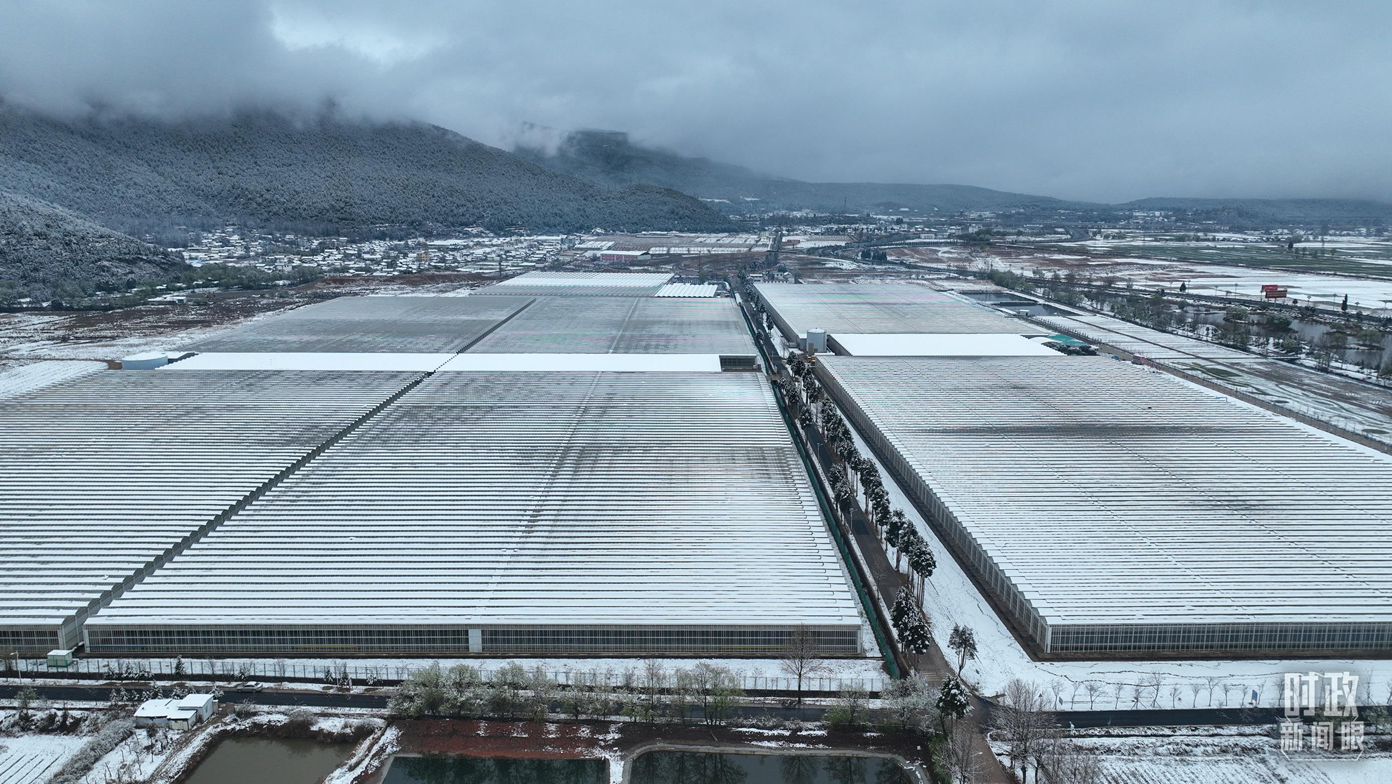 銀裝素裹的麗江現(xiàn)代花卉產(chǎn)業(yè)園。(總臺央視記者郭鴻拍攝)