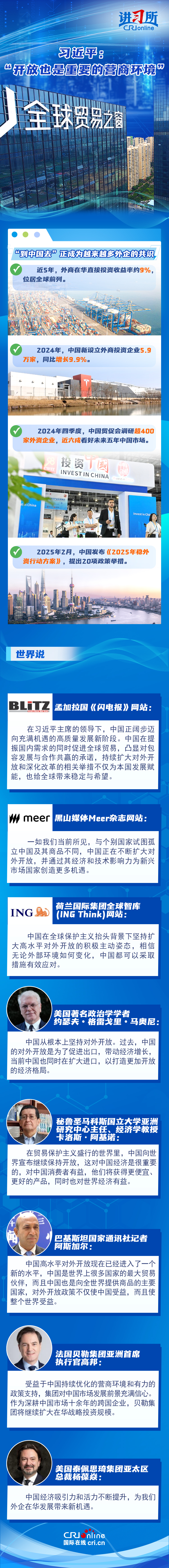 “中國開放的大門不會關閉,只會越開越大?!比ツ?2月,中國將“擴大高水平對外開放,穩(wěn)外貿、穩(wěn)外資”列為今年政府重點任務。新年以來,隨著政策紅利持續(xù)釋放,外資不斷用行動為中國投下“信心票”:德國光電行業(yè)巨頭蔡司宣布將在上海購地自建大中華區(qū)總部園區(qū),意大利百旺集團亞洲總部暨新工廠在蘇州高新區(qū)開業(yè),日本豐田汽車決定在華獨資設立雷克薩斯純電動汽車及電池的研發(fā)和生產公司……在他們看來,中國持續(xù)優(yōu)化營商環(huán)境、擴大高水平開放,經濟吸引力和活力不斷提升,不僅為中國發(fā)展賦能,也給全球帶來穩(wěn)定與希望。