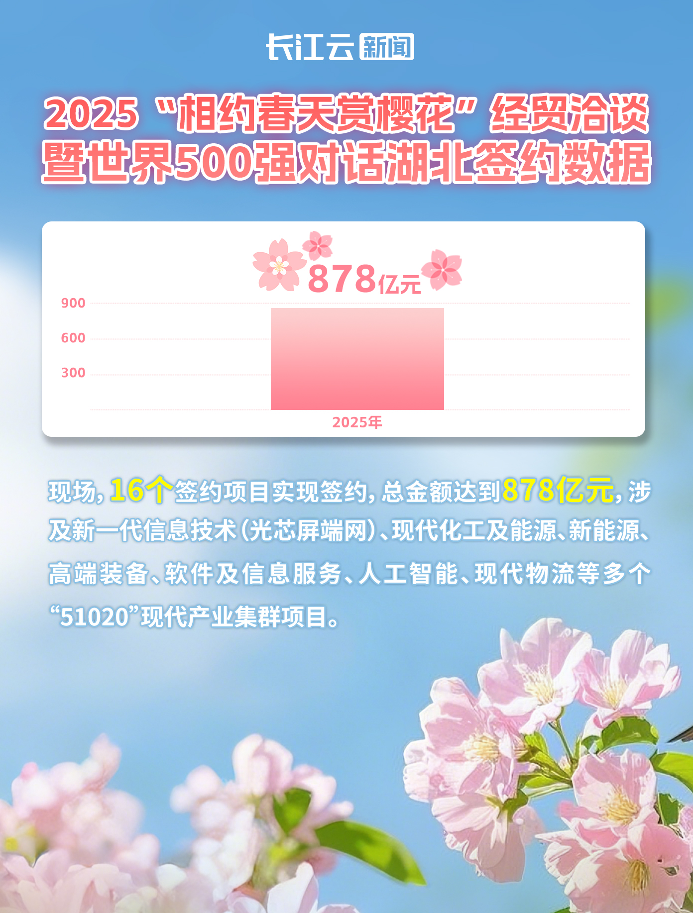 3月20日,時值“春分”,2025“相約春天賞櫻花”經(jīng)貿(mào)洽談暨世界500強對話湖北活動拉開帷幕,湖北以“櫻”為媒,張開懷抱歡迎四海賓朋!