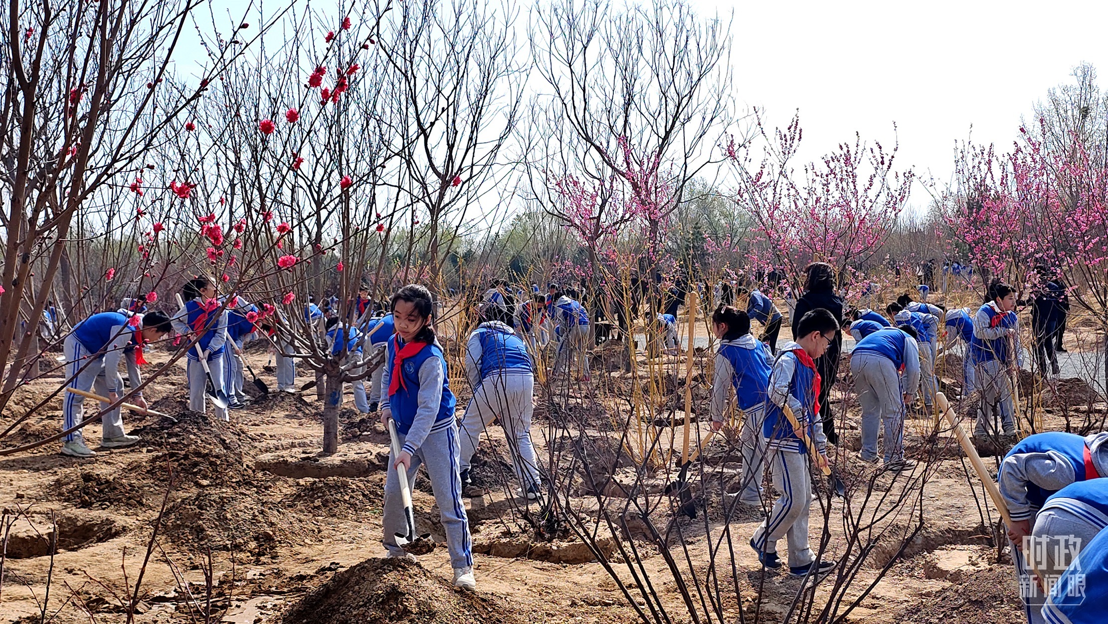 △少先隊員拿起鐵鍬參加義務植樹。(總臺央視記者范凱拍攝)