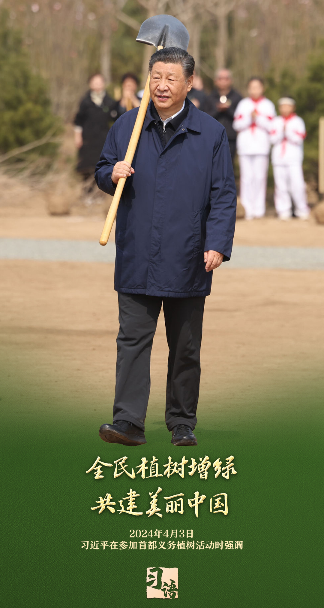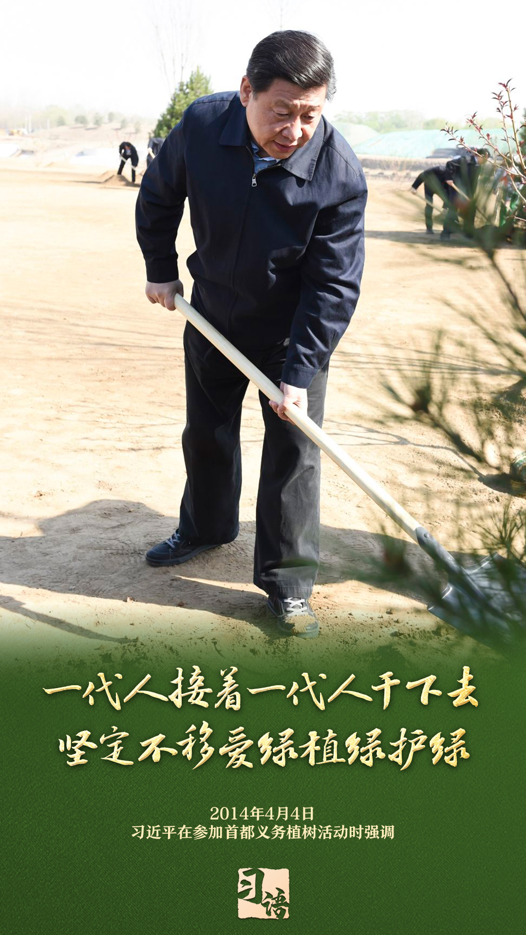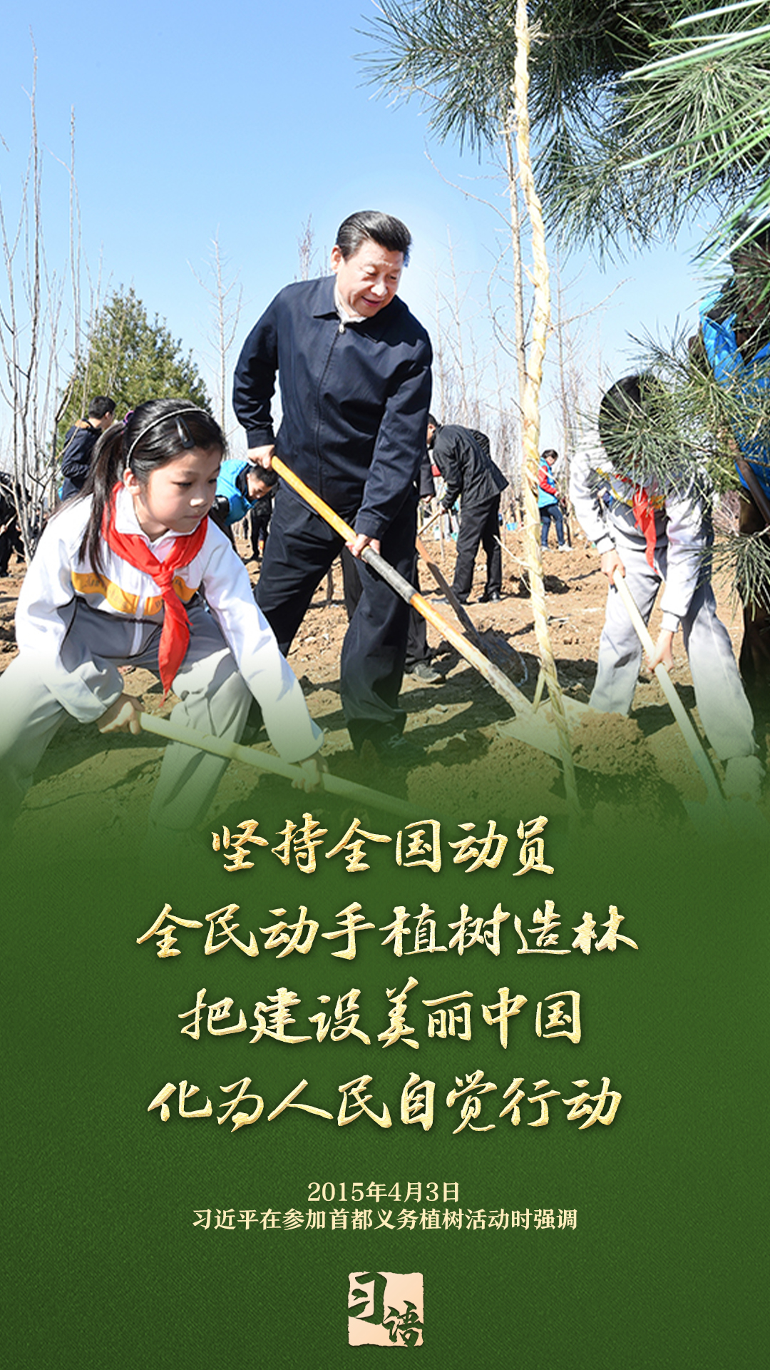 “植樹造林是一件很有意義的事情,是一項功在當(dāng)代、利在千秋的崇高事業(yè),要一以貫之、持續(xù)做下去?!弊?013年以來的13個春天里,無論晴雨,習(xí)近平總書記都會拿起鐵鍬,與干部群眾一起參加首都義務(wù)植樹活動。鏟土造坑、培土圍堰、提水澆灌,總書記身體力行種下綠色的希望,對擴綠興綠護綠、建設(shè)美麗中國提出明確要求。一起學(xué)習(xí)。
