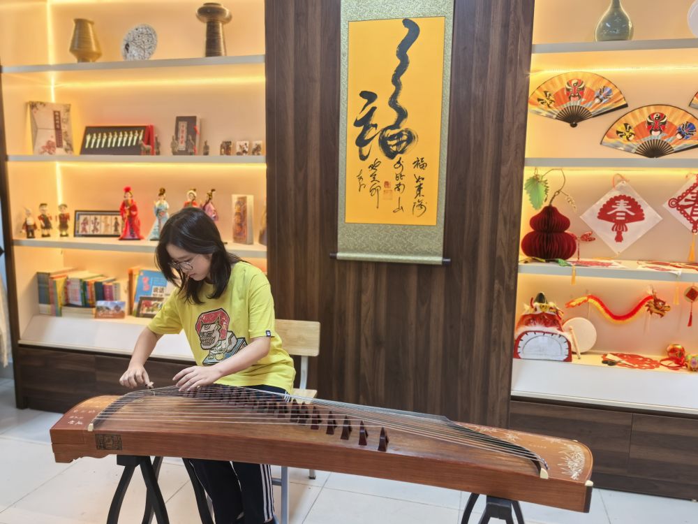 3月29日,越南河內(nèi)—阿姆斯特丹高中“越中文化室”正式啟用。該校高三學(xué)生阮霞英端用古箏彈奏《女兒情》。河內(nèi)中國(guó)文化中心供圖