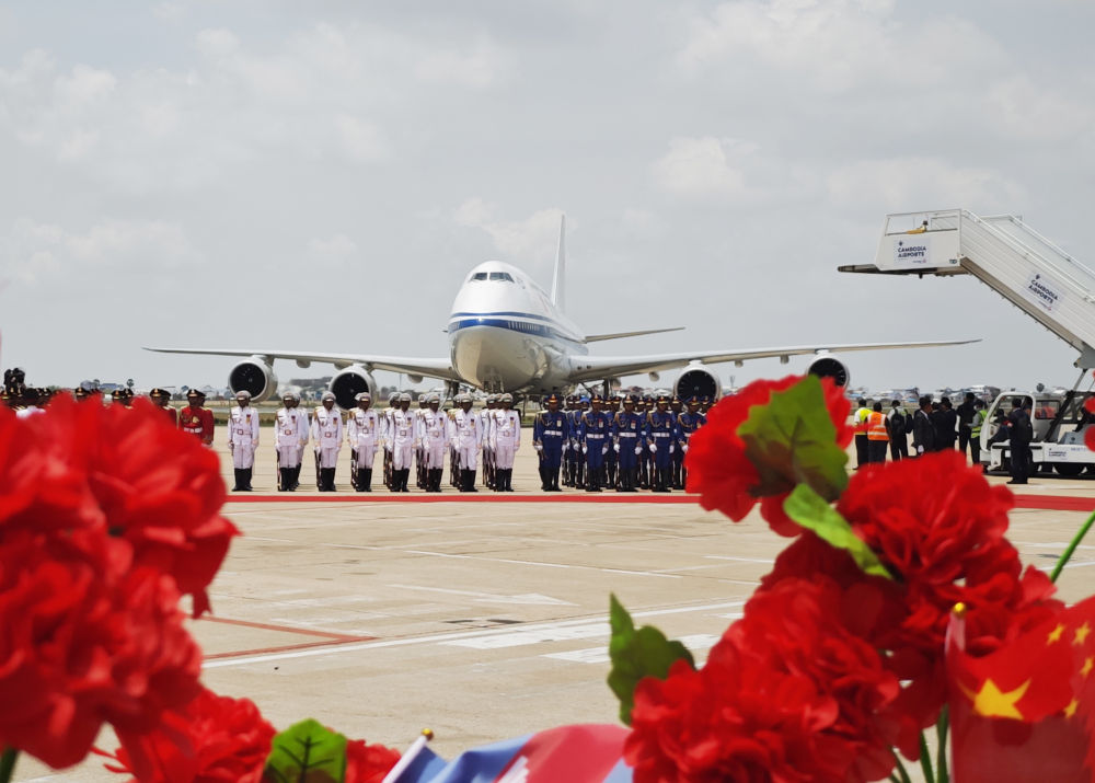國家主席習近平抵達金邊,開始對柬埔寨進行國事訪問。