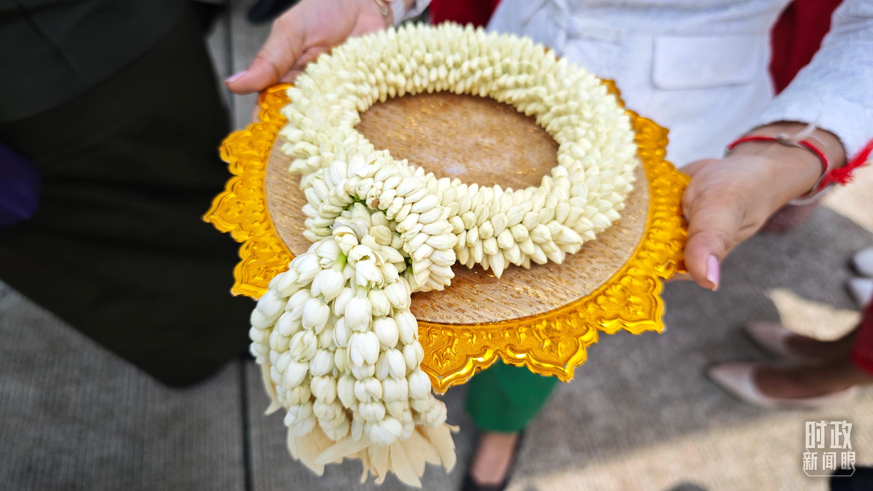 柬埔寨王室珍娜公主向習(xí)主席獻(xiàn)上的茉莉花手環(huán)。(總臺央廣記者潘毅拍攝)
